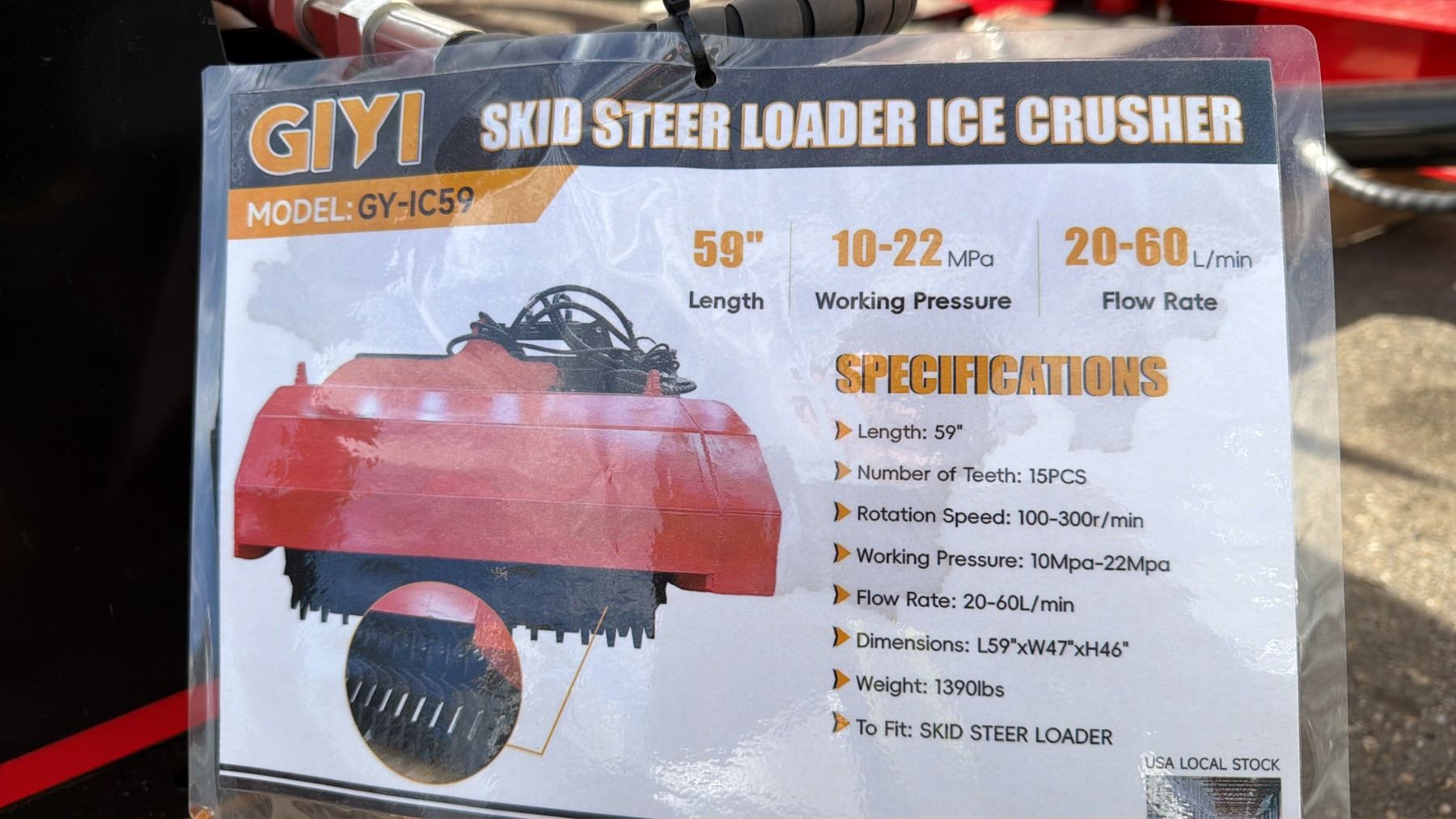 GIYI GY-IC59, 59" HEAVY DUTY SKID STEER ICE CRUSHER ATTACHMENT