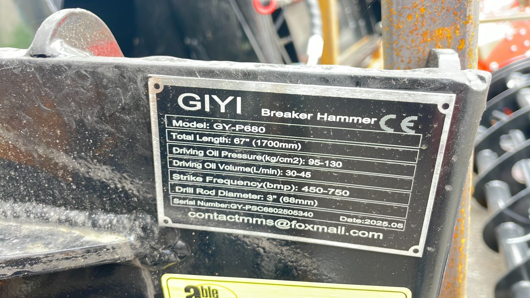 GIYI GY-P680 YELLOW 67" HYDRAULIC SKID STEER BREAKER HAMMER ATTACHMENT