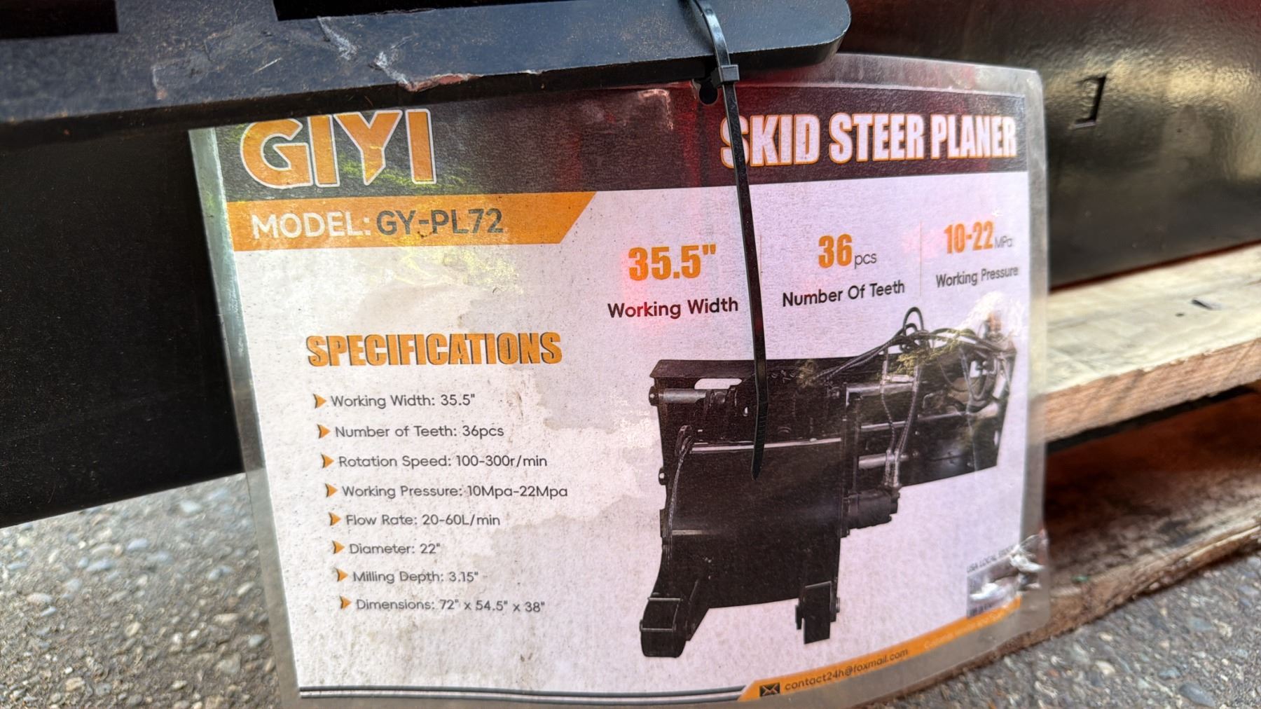 GIYI GY-PL72, 35.5" INDUSTRIAL SKID STEER PLANER ATTACHMENT