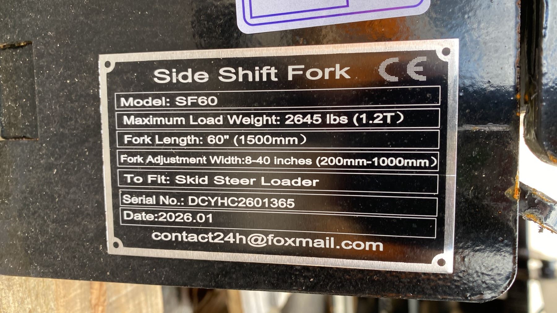 GIYI GY-SF60, SKID STEER 60" HYDRAULIC SIDE SHIFT PALLET FORK ATTACHMENT