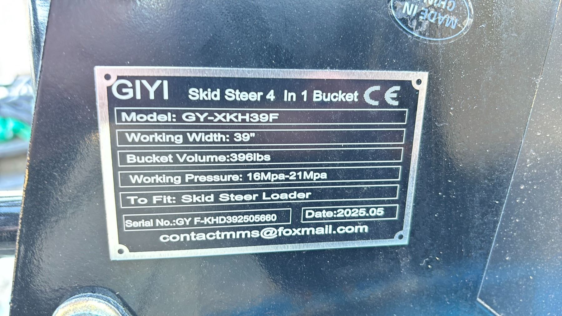 GIYI SKID STEER 4-IN-1 BUCKET TO FIT SKID STEER LOADER GY-XKH39F, 39" WORKING WIDTH, 396LBS BUCKET VOLUME, 16MPA-21MPA WORKING PRESSURE SERIAL# GYF-KHD392505660