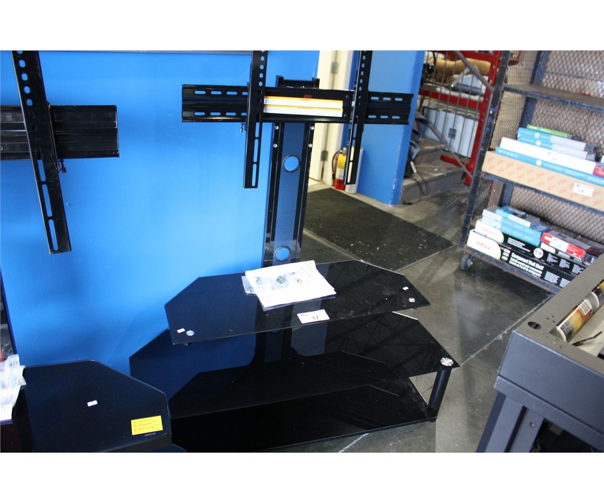GLASS AND BLACK METAL 3 TIER TELEVISION STAND