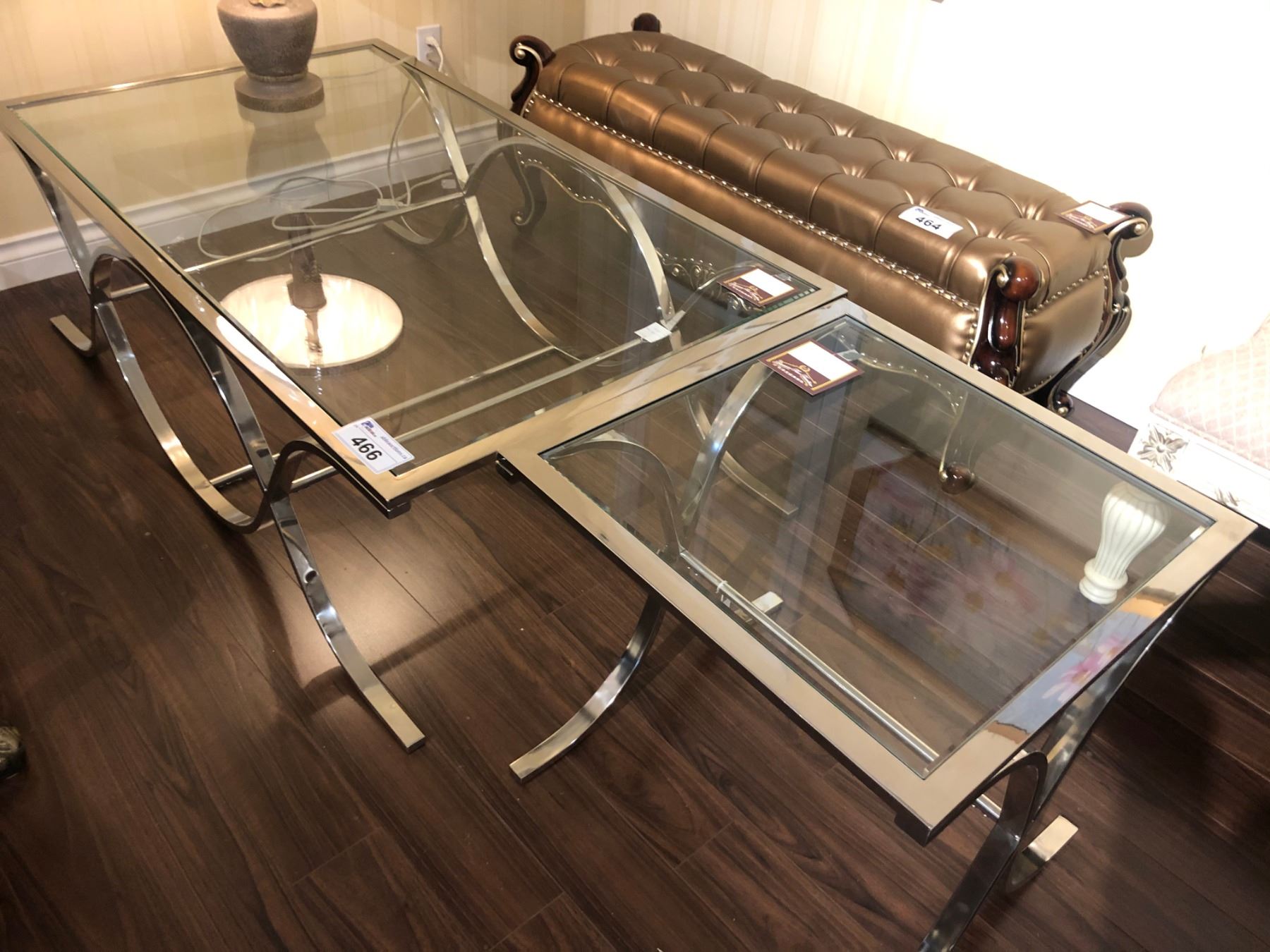 GLASS AND STEEL COFFEE AND END TABLE SET (2 PCS)