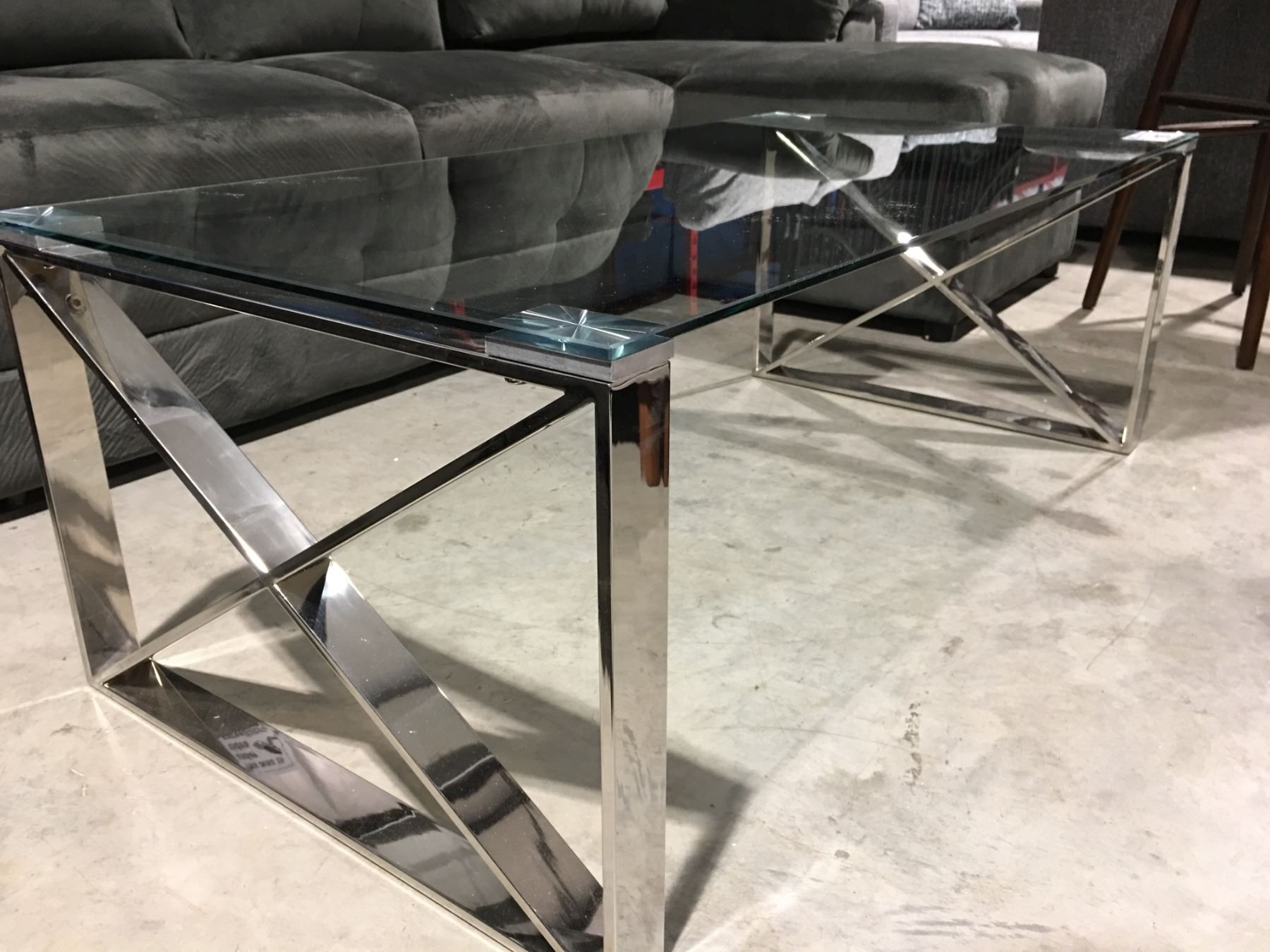 GLASS COFFEE TABLE WITH CHROME BASE 47" X 34"