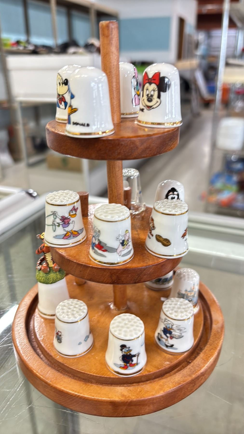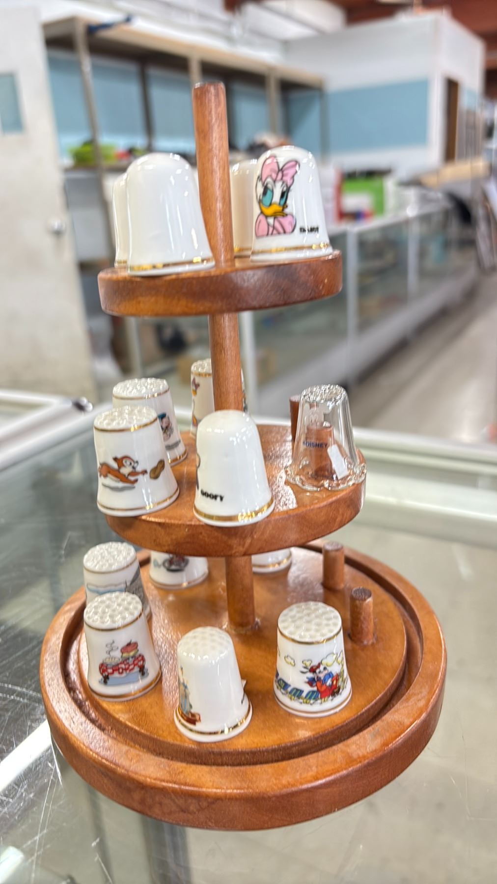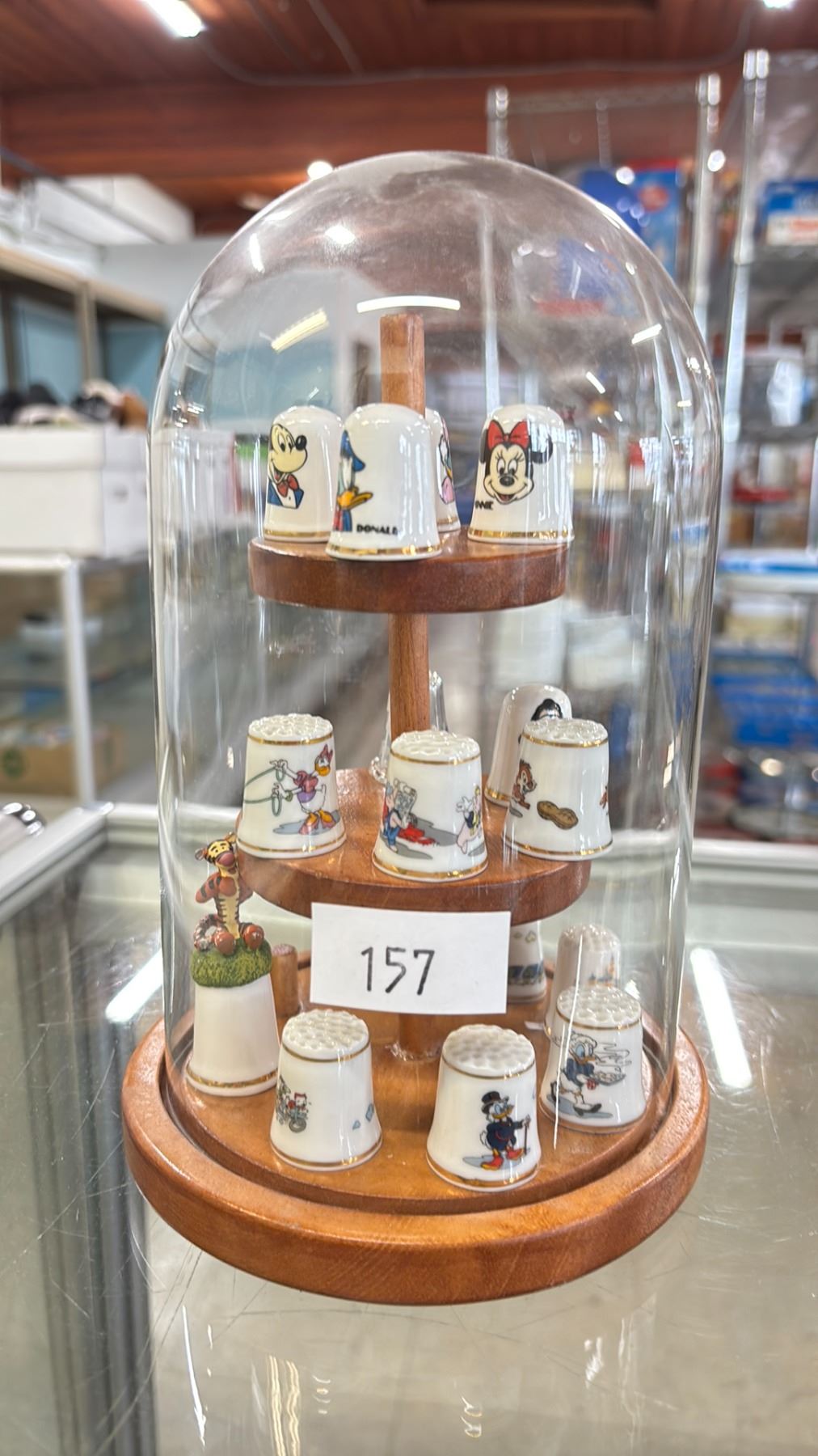GLASS DOME THIMBLE STAND WITH GLASS DISNEY THIMBLES