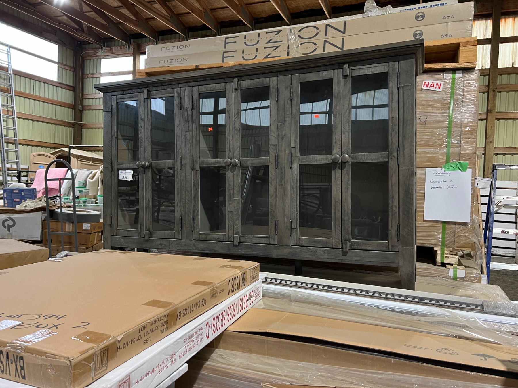 GLASS DOOR BUFFET - 3 SETS OF GLASS DOUBLE DOOR - TOP 70.5" L X 15" W - STORAGE AREA IS 13.5"