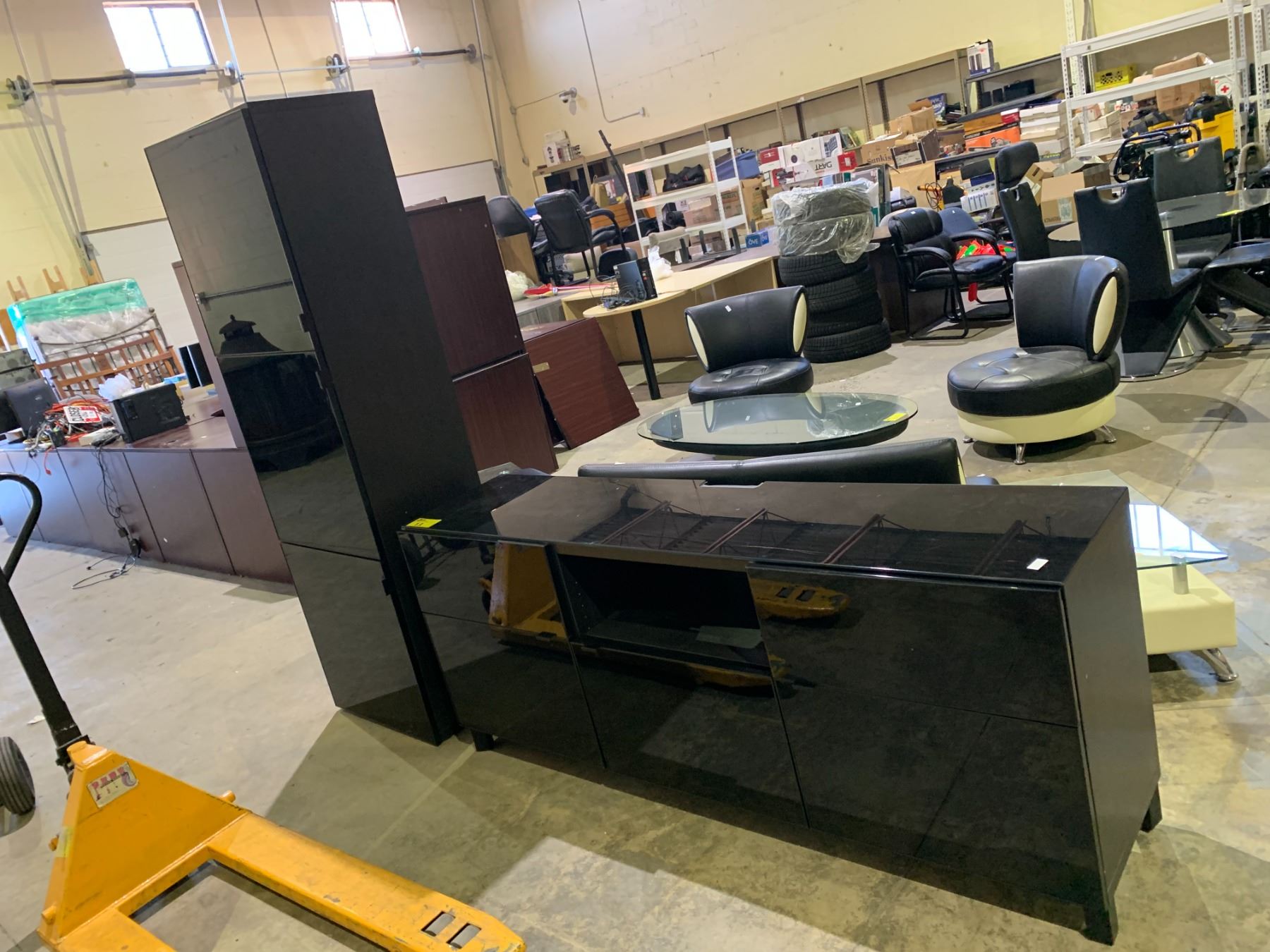 GLASS FRONT CREDENZA AND STORAGE CABINET SET
