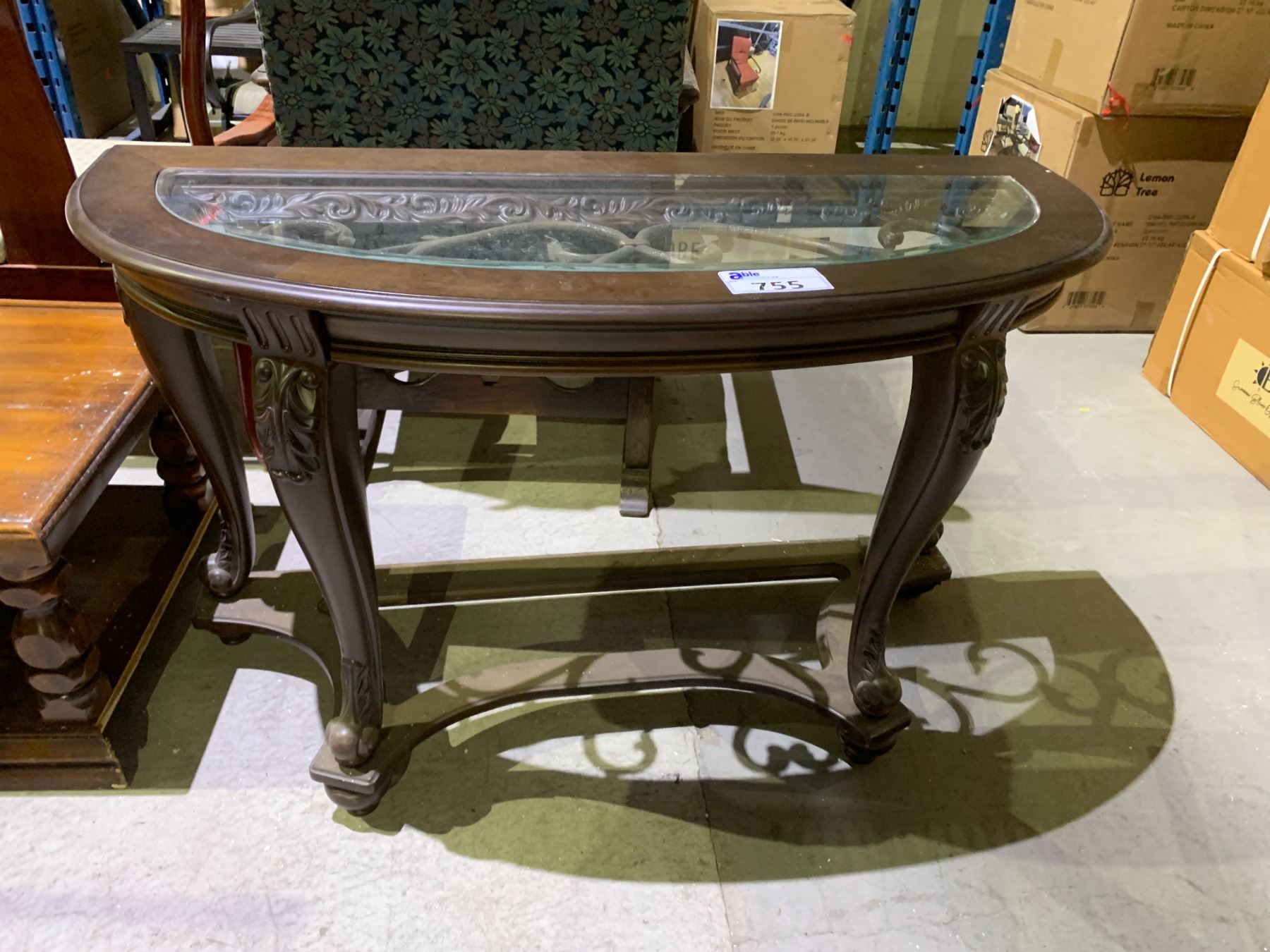 GLASS INLAID HALL "D" TABLE 48" X 19" X 30"