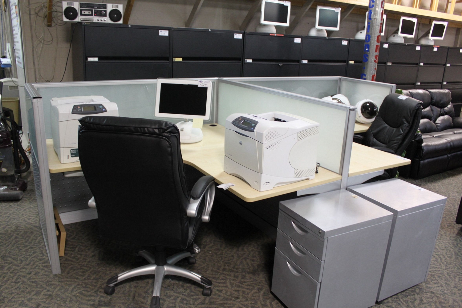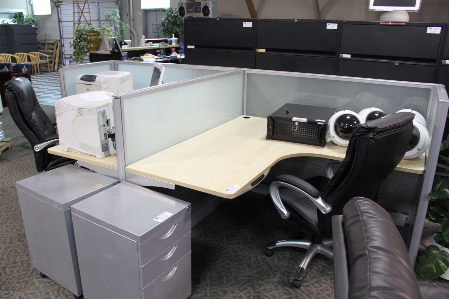 GLASS PANEL 2 PERSON MAPLE TOP WORKSTATION