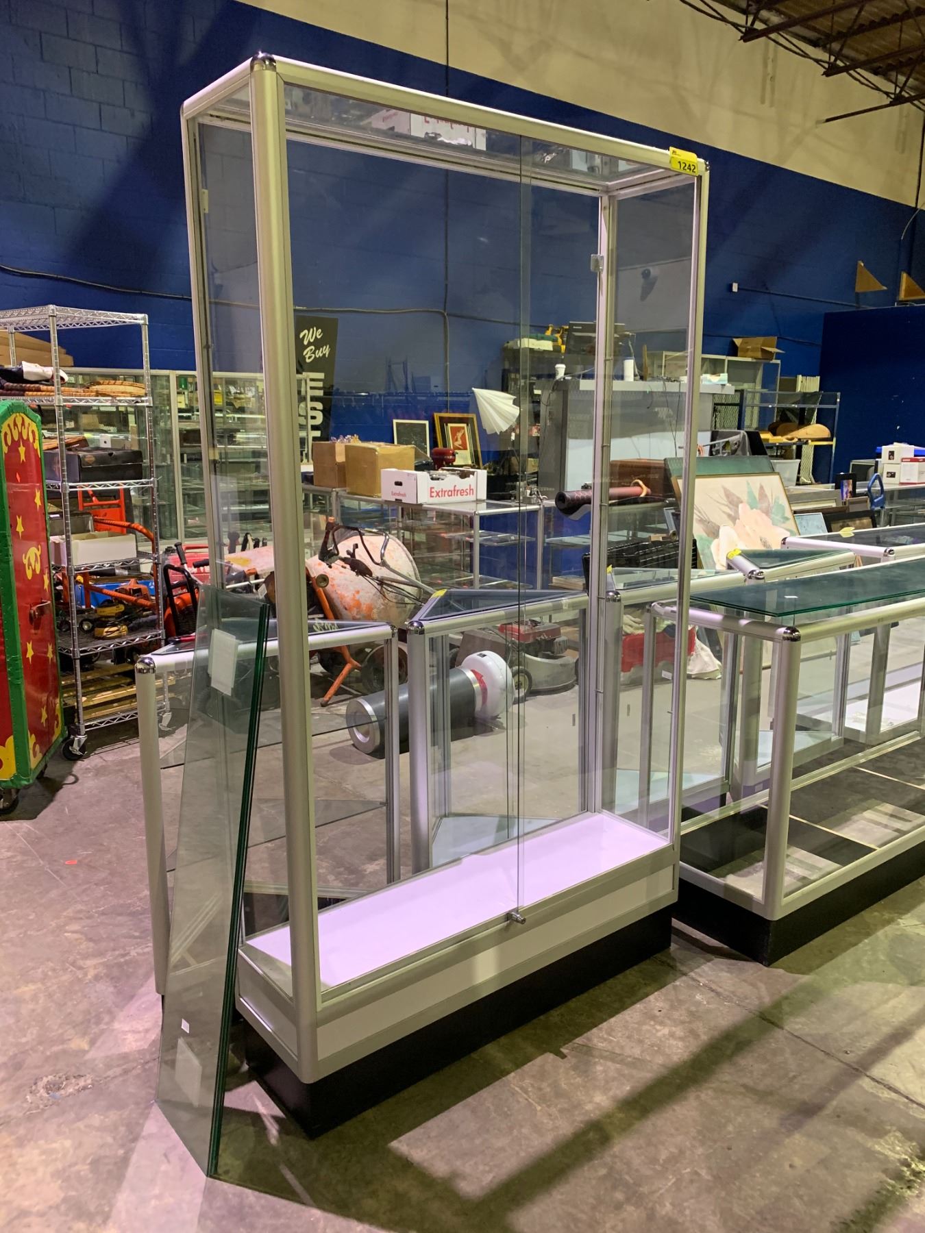 GLASS SHOWCASE CABINET WITH SHELVES & DOORS 84" X 48" X 14"