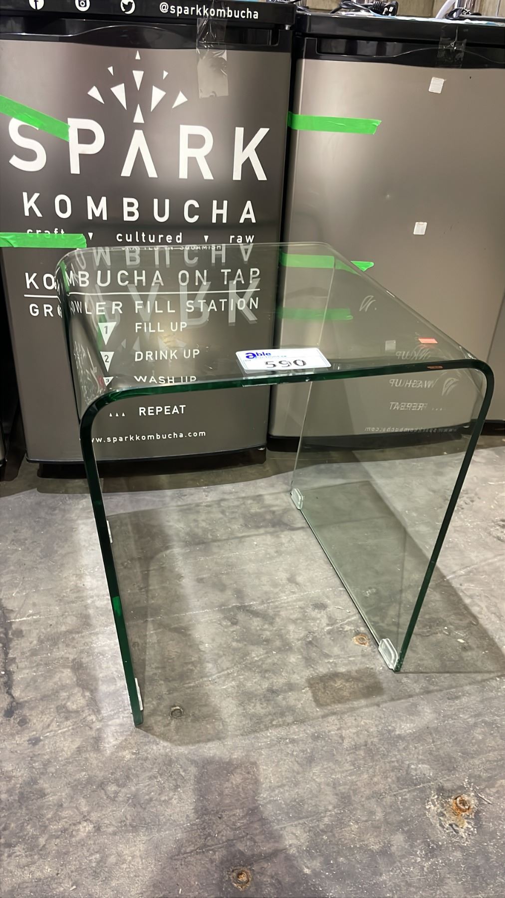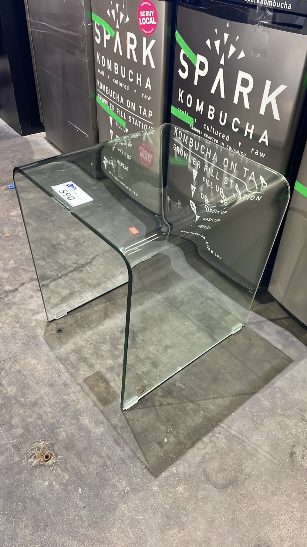 GLASS SIDE TABLE - APPROXIMATELY 19" W X 19.5" D X 21" T