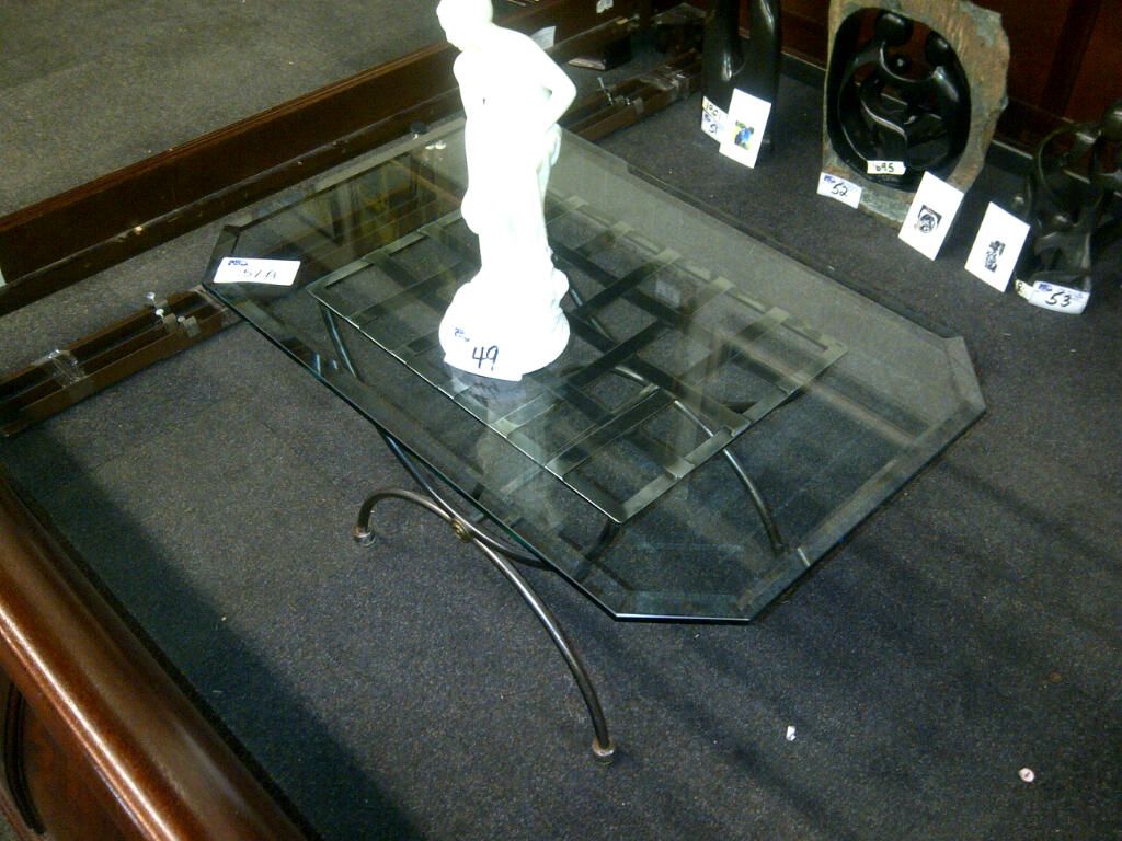 GLASS TABLE WITH METAL STAND - BEVELED EDGE SIDE TABLE