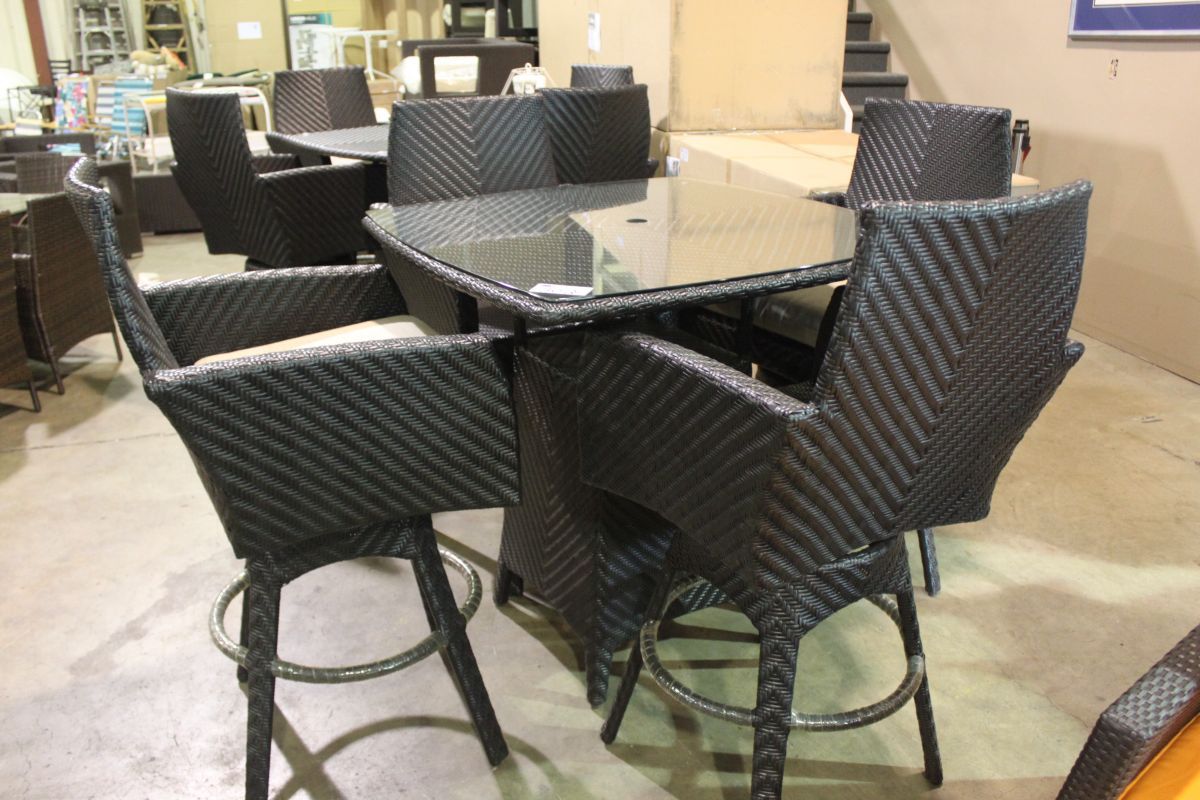 GLASS TOP BAR HEIGHT PATIO DINING TABLE WITH 4 STOOLS