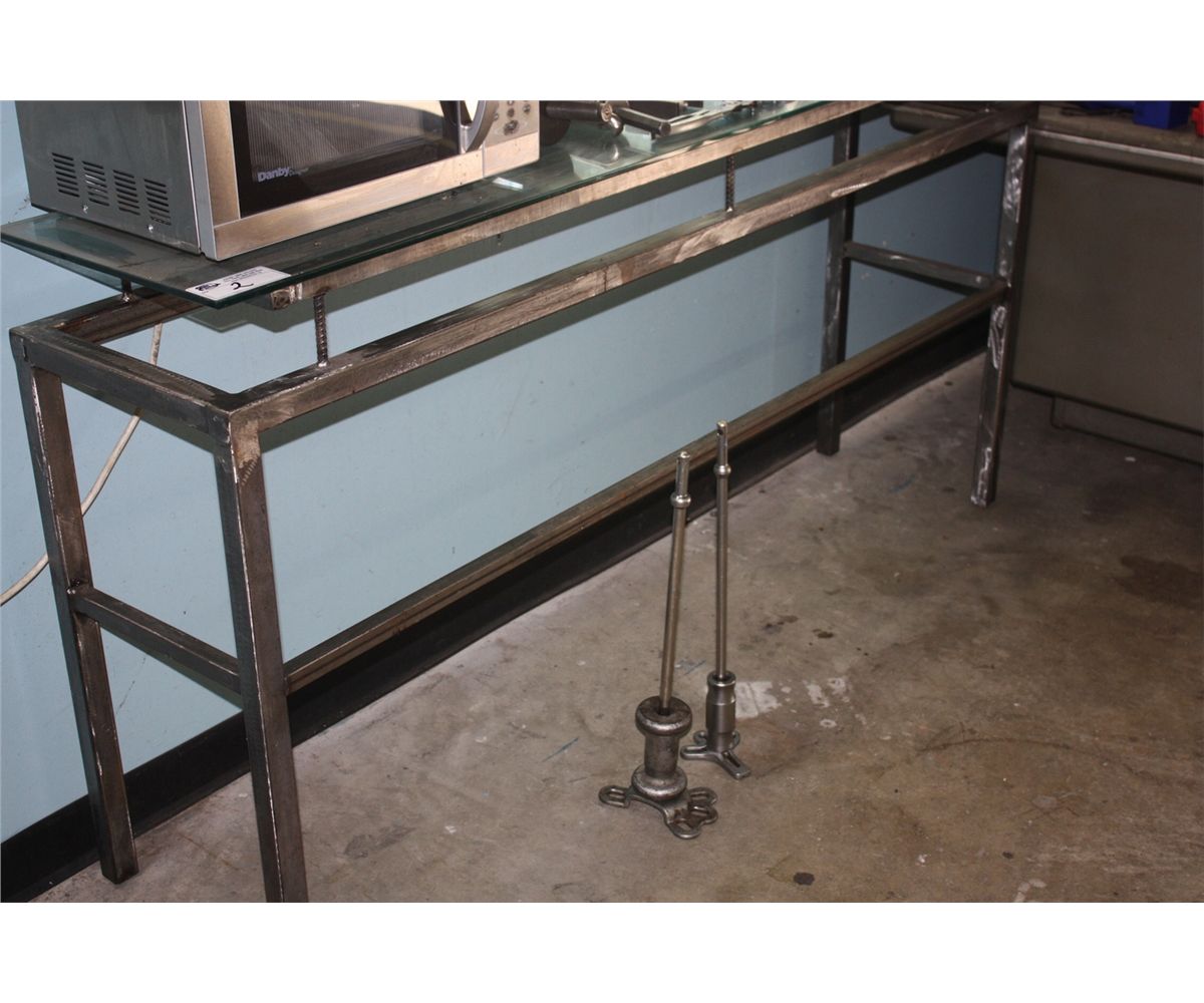 GLASS TOP BRUSHED STEEL BAR HEIGHT TABLE
