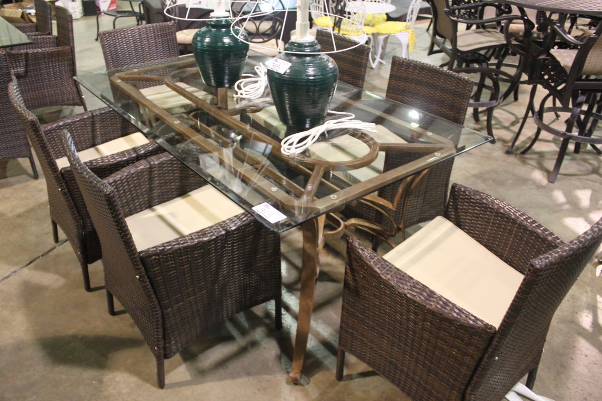 GLASS TOP PATIO DINING TABLE WITH 6 CHAIRS