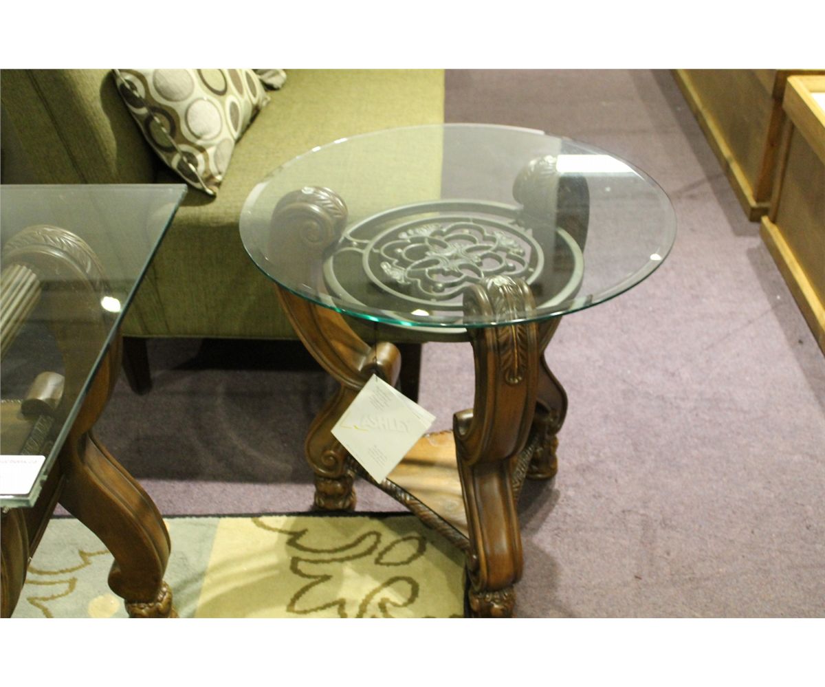 GLASS TOP WITH WROUGHT IRON BASE SOFA TABLE WITH MATCHING END TABLE