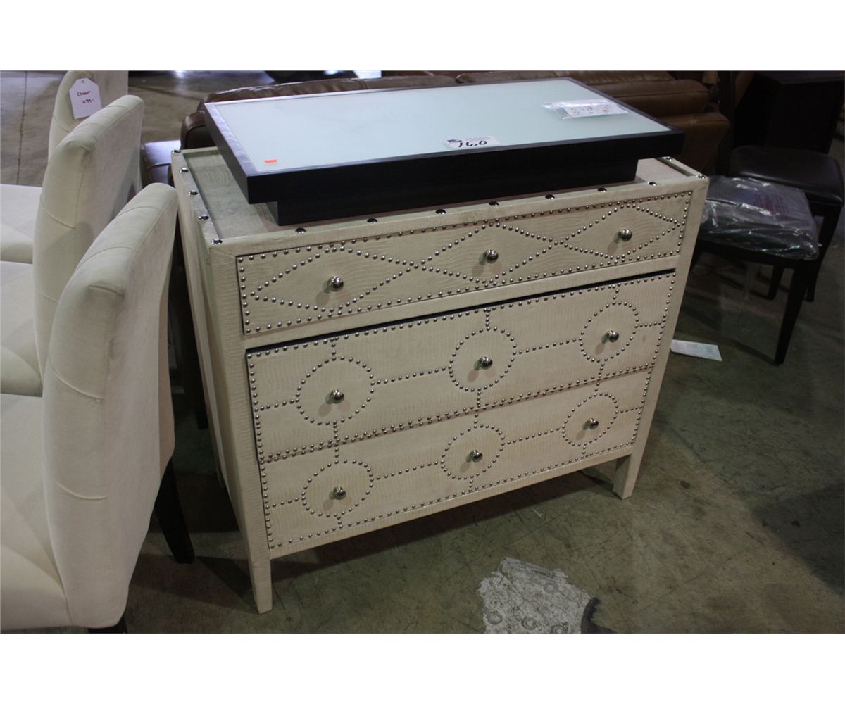 GLASS TRAY AND 3 DRAWER FABRIC CHEST