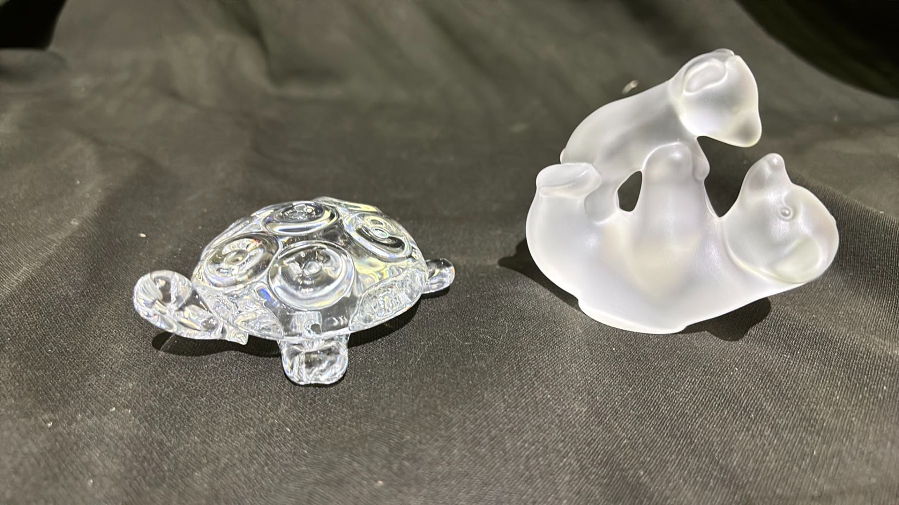 GLASS TURTLE & CRYSTAL DE SEVRES BEAR AND CUB