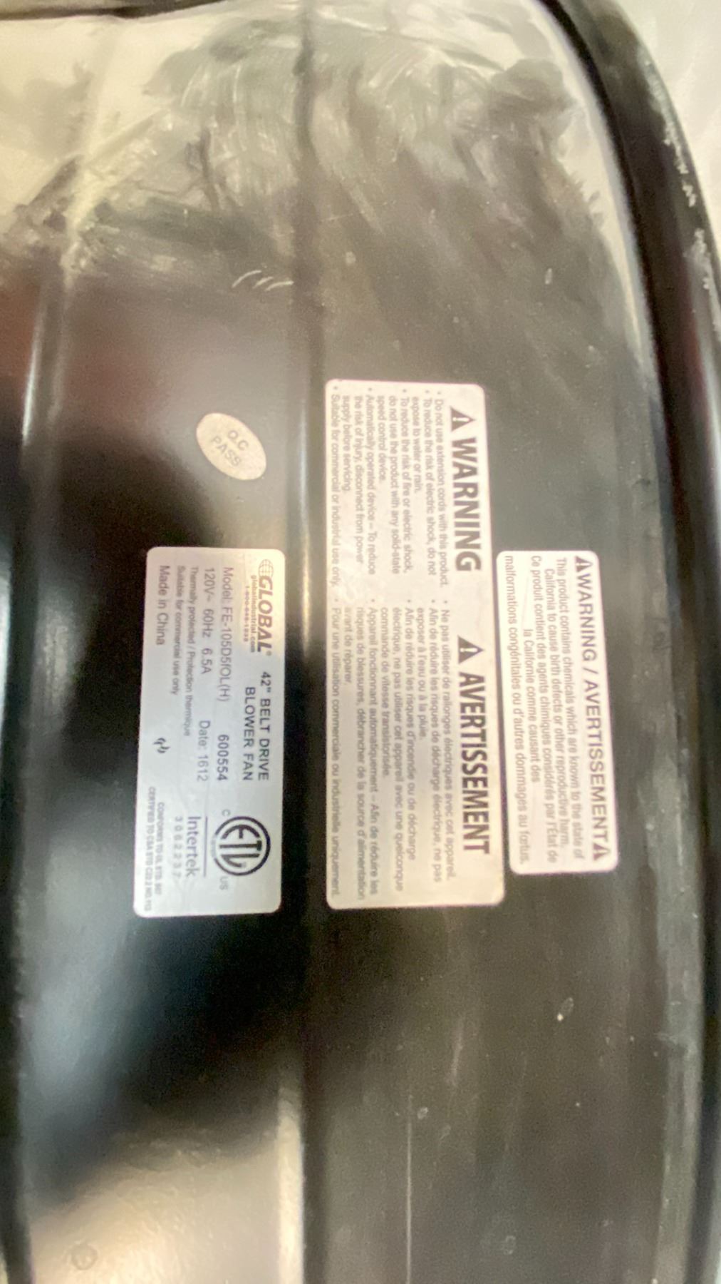 GLOBAL 42" BELT DRIVE BLOWER FAN 2 SPEED