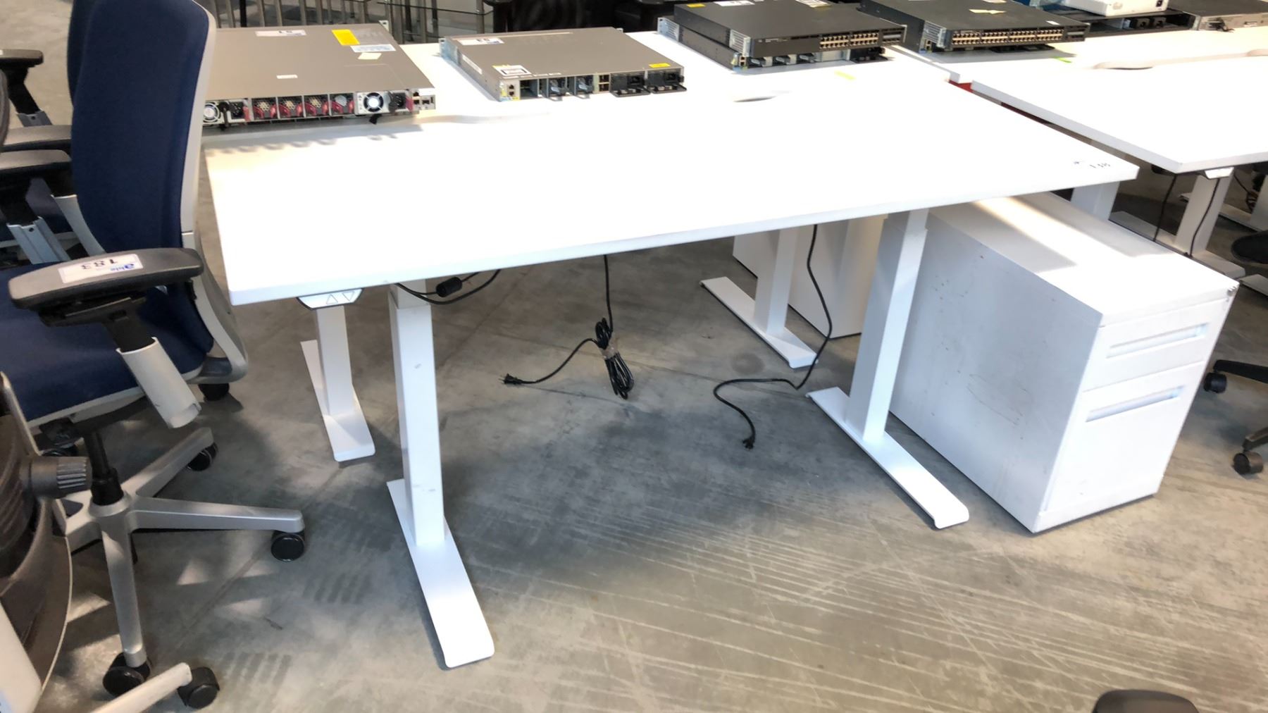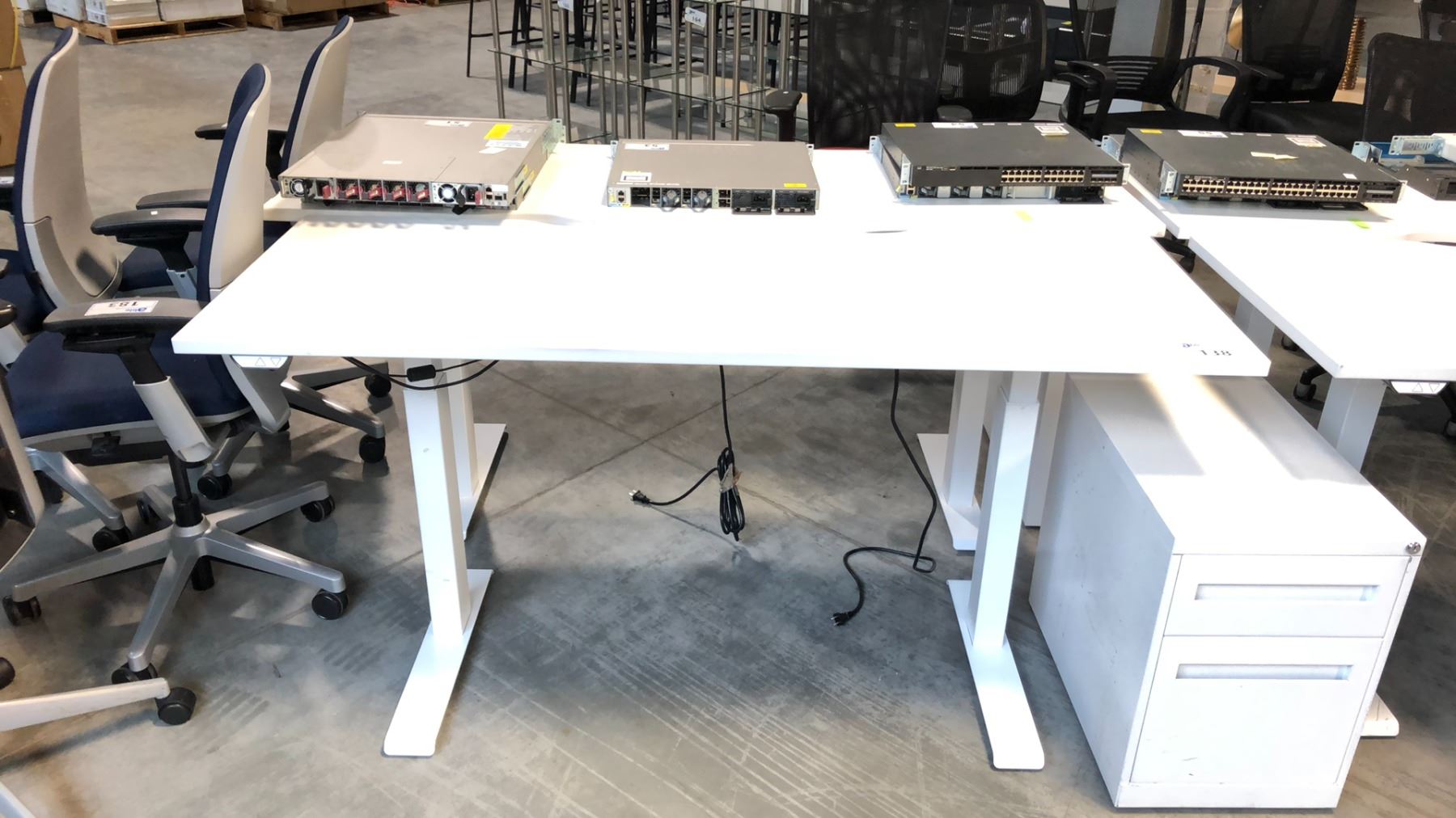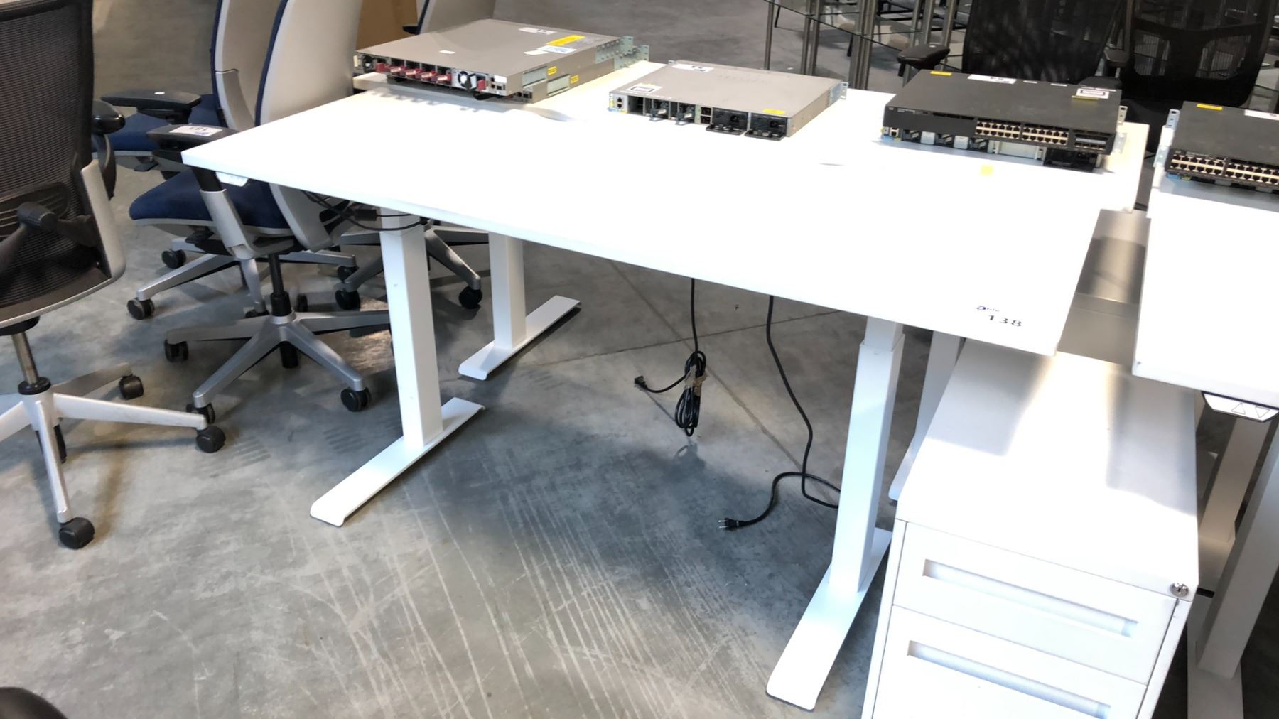 GLOBAL BOULEVARD GREY 66  X 24  ELECTRIC SIT/STAND PROGRAMMERS TABLE