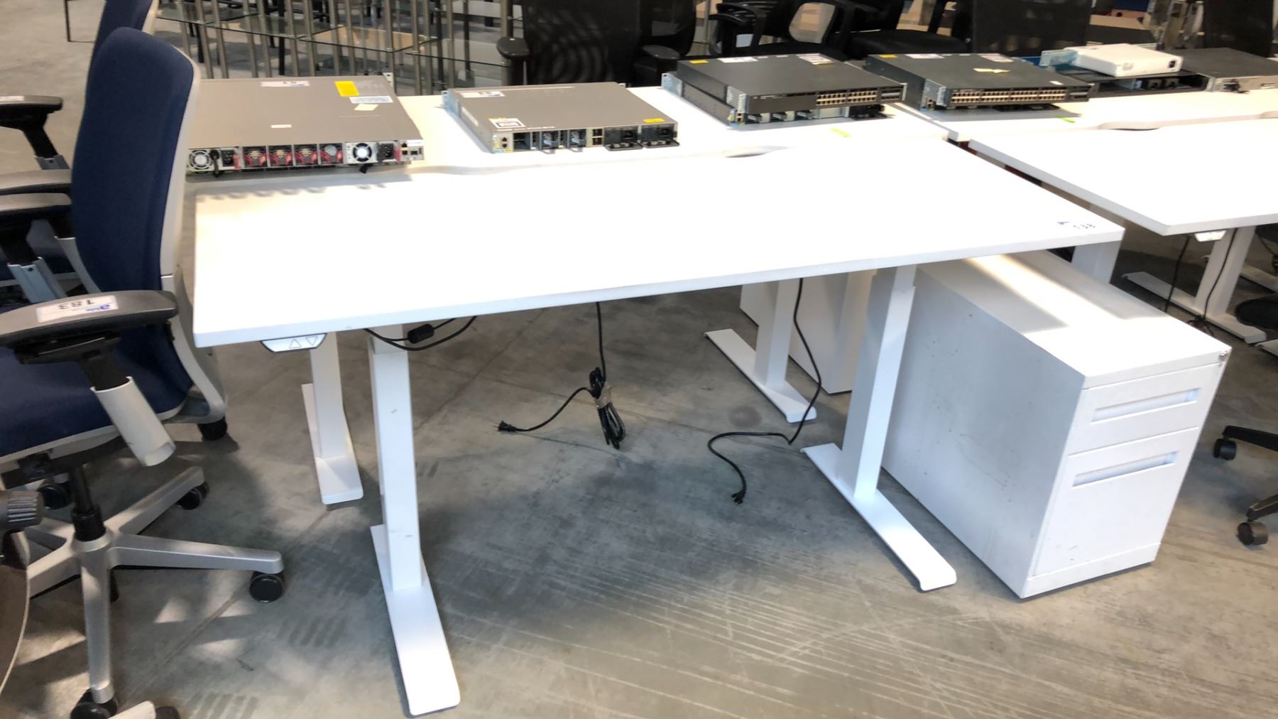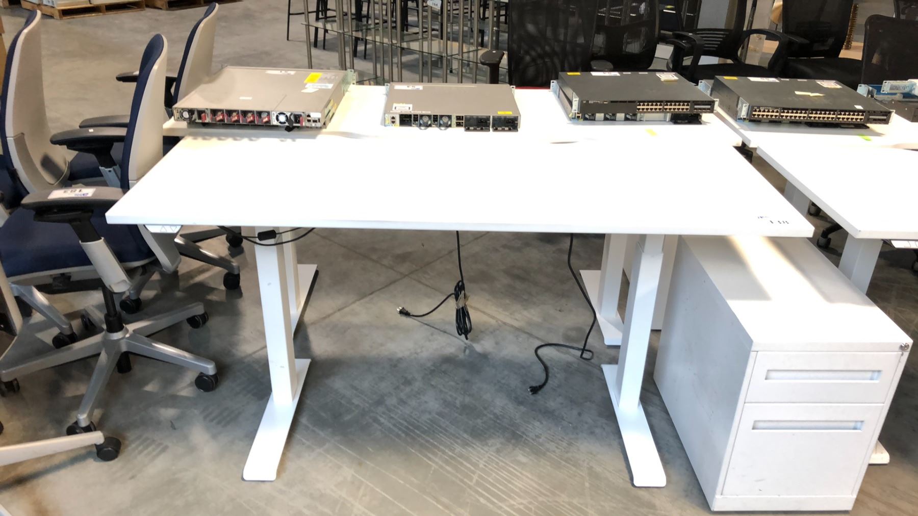 GLOBAL BOULEVARD GREY 66  X 24  ELECTRIC SIT/STAND PROGRAMMERS TABLE