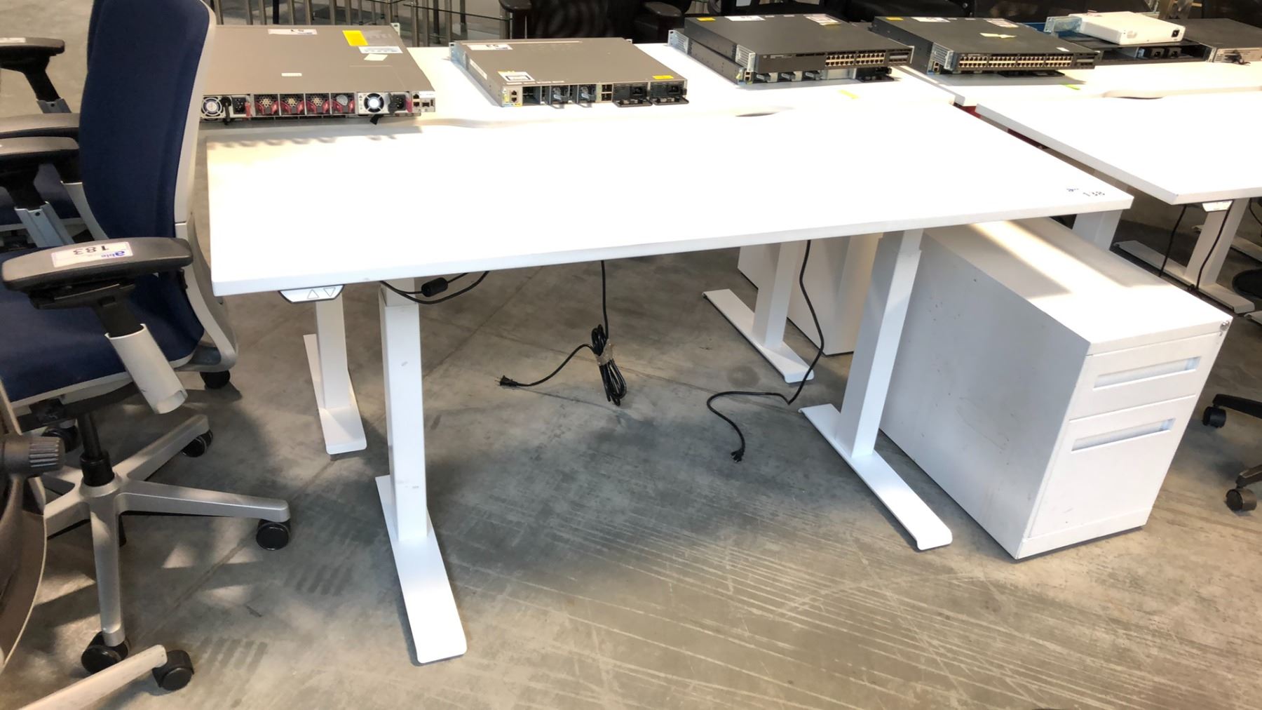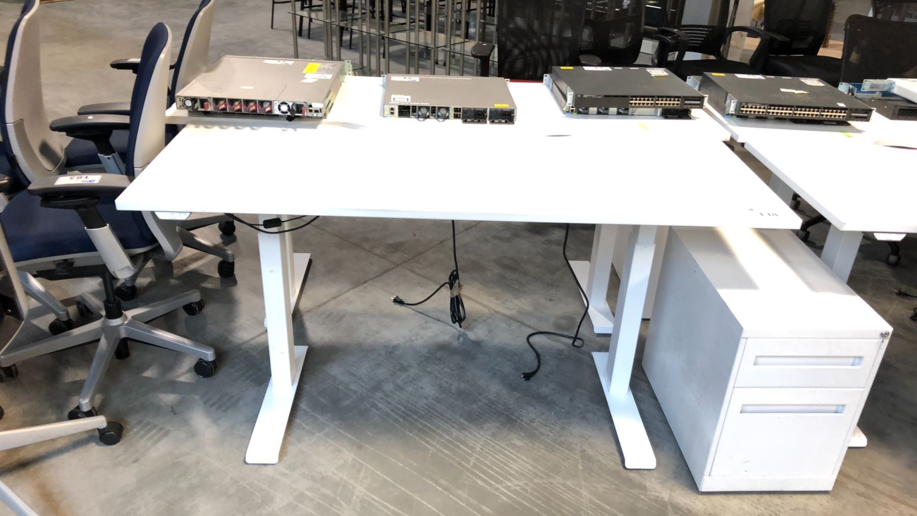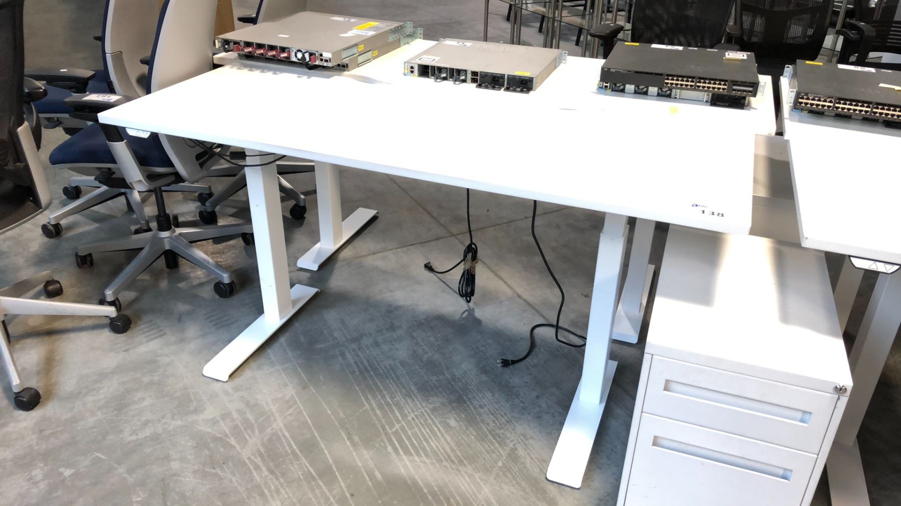 GLOBAL BOULEVARD GREY 66  X 24  ELECTRIC SIT/STAND PROGRAMMERS TABLE