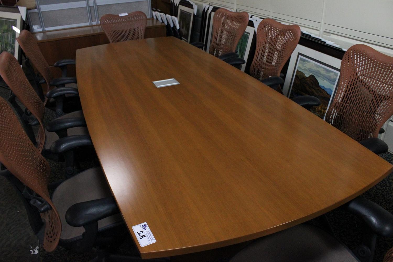 GLOBAL CHERRY BOARDROOM SUITE *BRAND NEW - REPLACEMENT COST $14000* INCL. 10FT BOARDROOM TABLE - CONFERENCE BOARD - UPRIGHT CABINET& CREDENZA