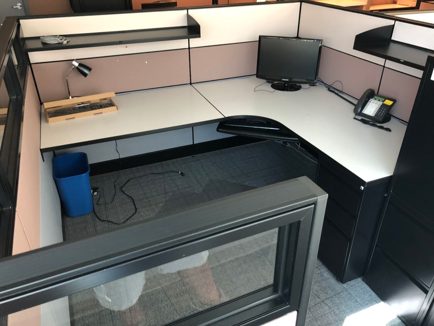 GLOBAL EVOLVE 2 PERSON OFFICE CUBICLE SYSTEM INC. DESK SURFACES, PANELS, AND PEDESTALS