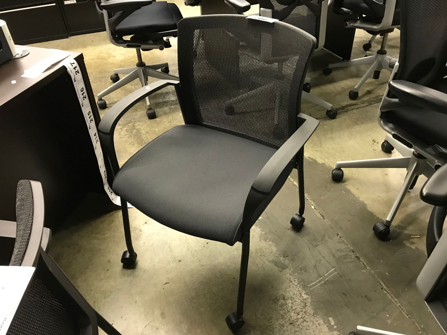 GLOBAL GREY AND BLACK MESH BACK CLIENT CHAIR
