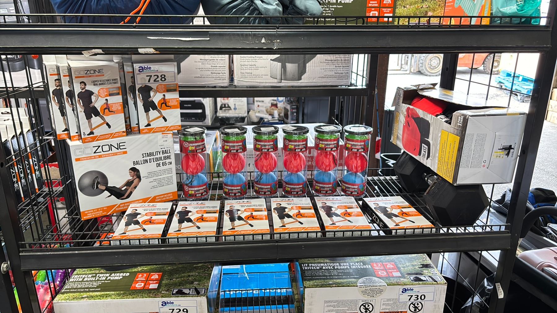 GO ZONE LOOPED RESISTANCE BANDS, GO ZONE STABILITY BALL, STREET HOCKEY BALLS, BOXING LGOVES & A 30 LB DUMBBELL