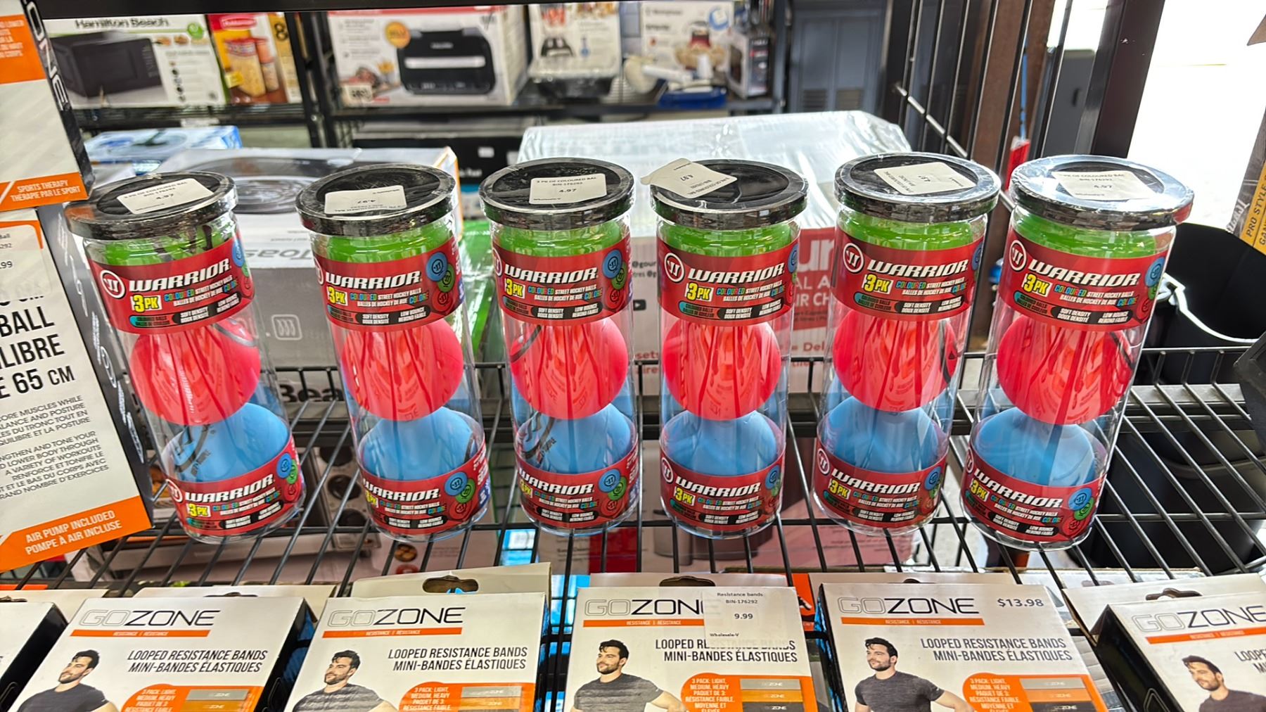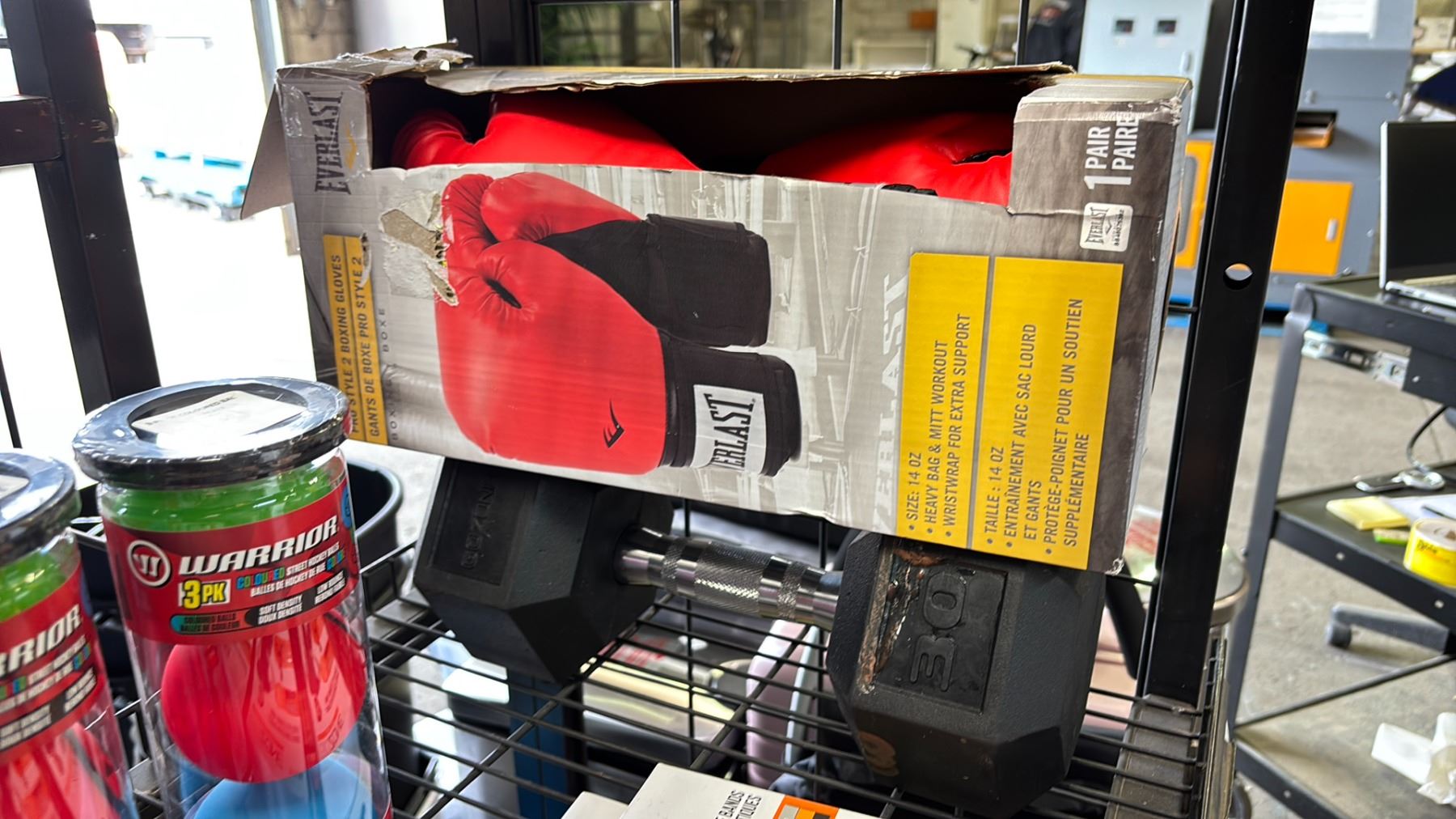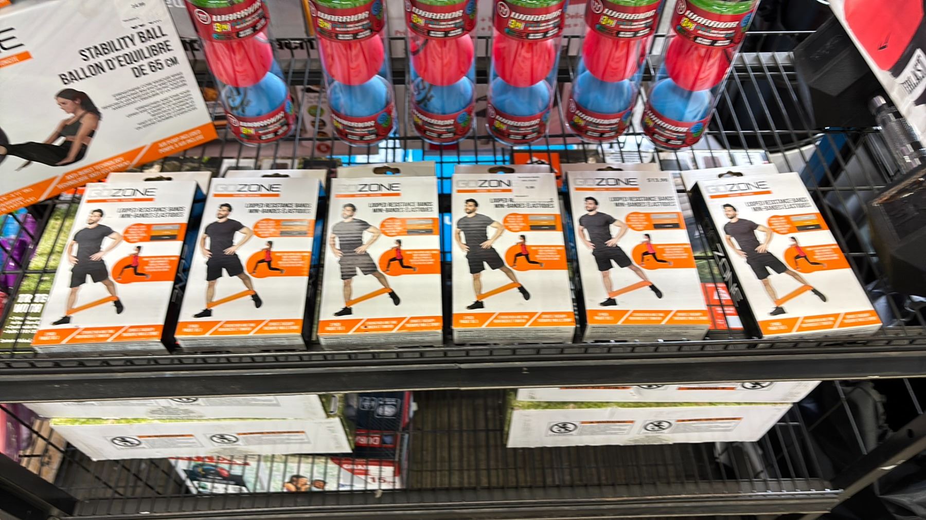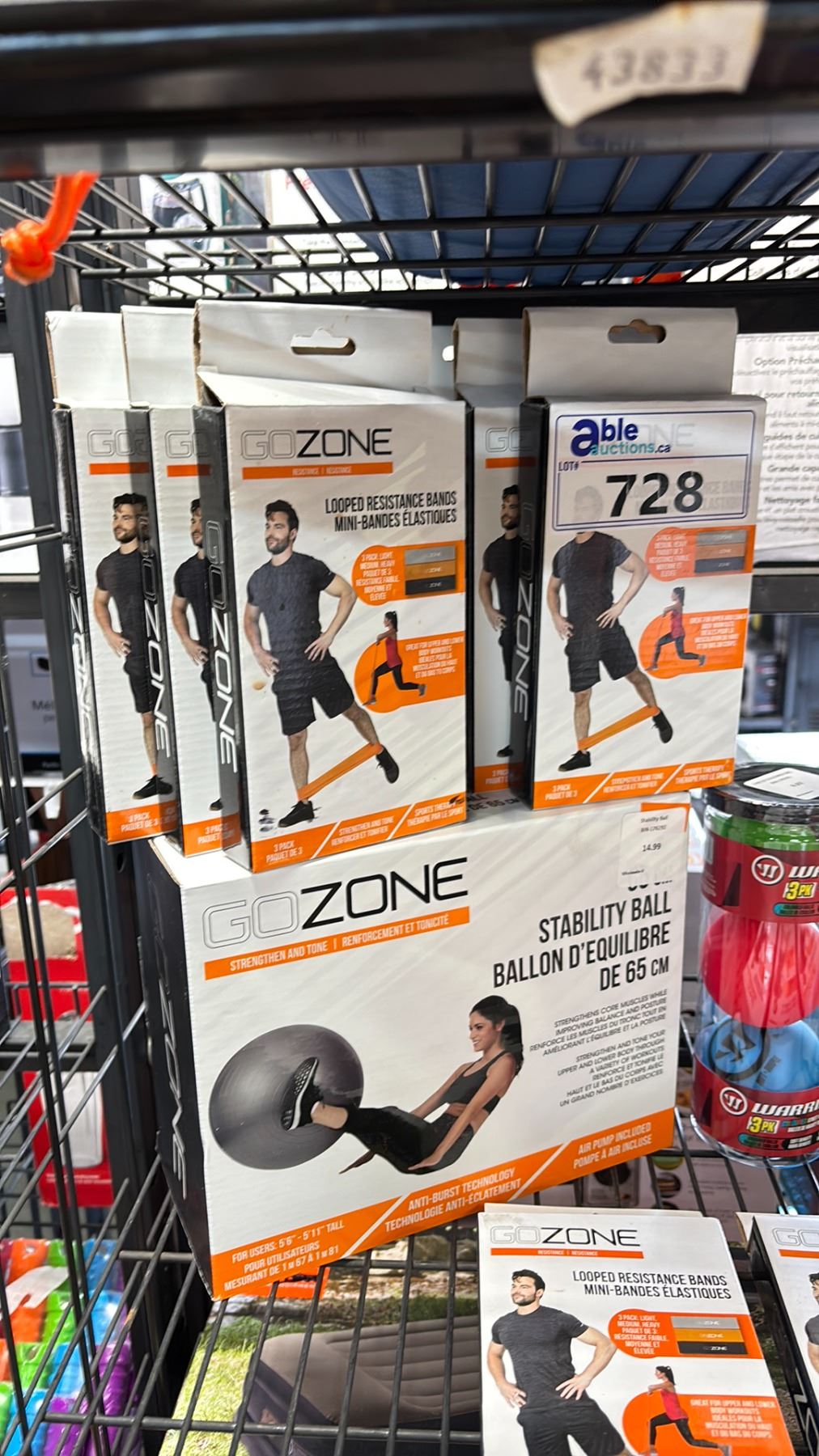 GO ZONE LOOPED RESISTANCE BANDS, GO ZONE STABILITY BALL, STREET HOCKEY BALLS, BOXING LGOVES & A 30