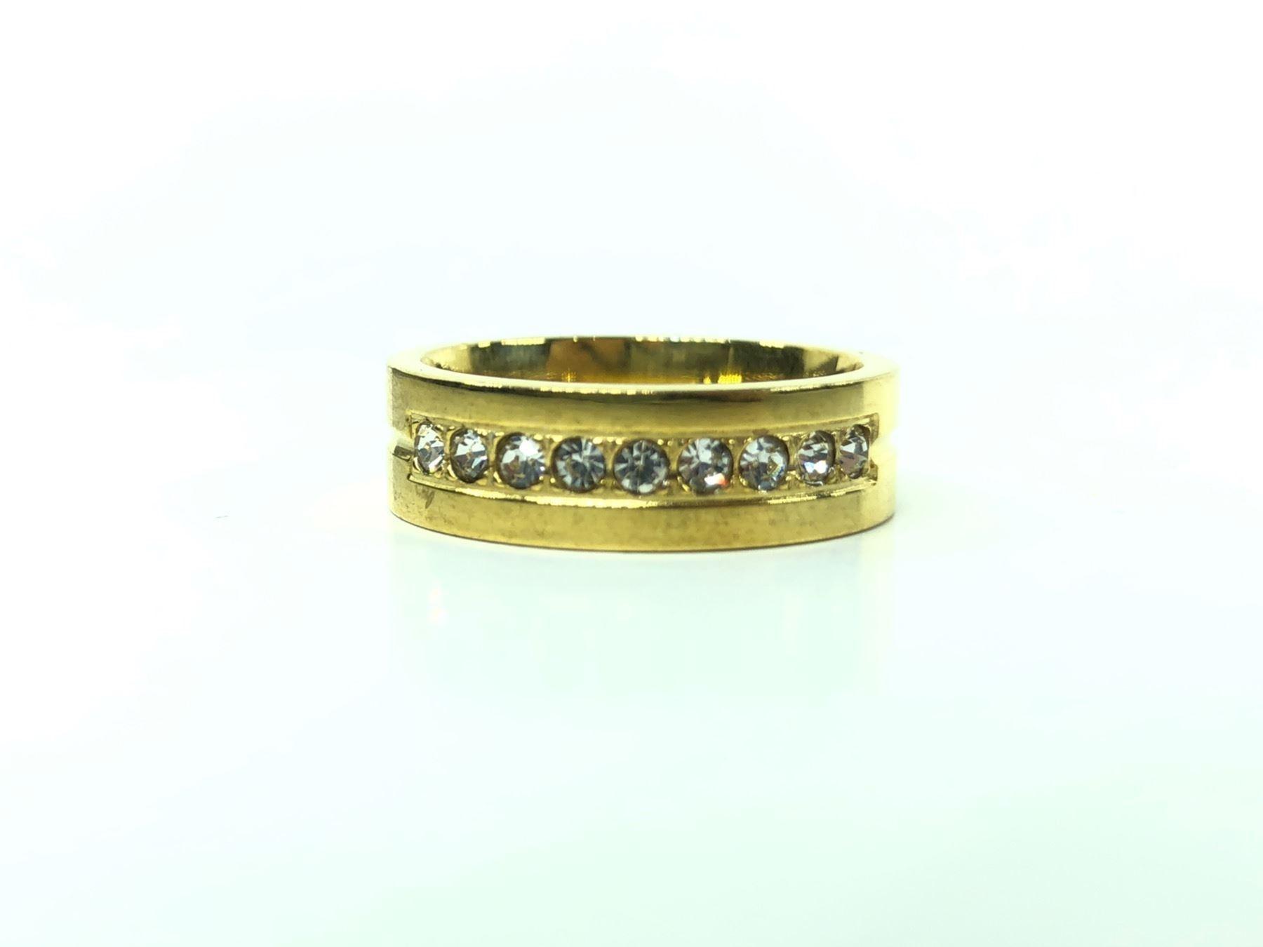 GOLD COLOUR TITANIUM STEEL RING WITH 9 CUBIC ZIRCONIUMS, SIZE 7, JEWELRY BOX NOT INCLUDED