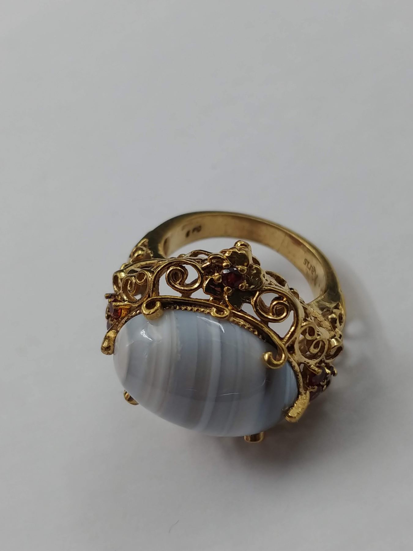 GOLD COLOURED COSTUME RING SET WITH WHITE STONE & RED GEMS