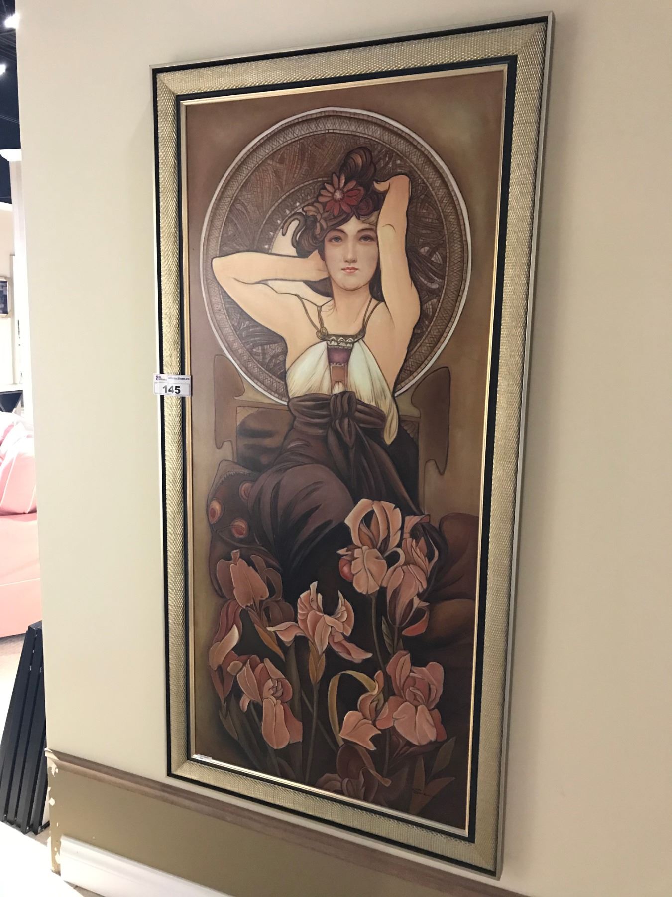 GOLD FRAMED LADY IN FLOWERS CANVAS ARTWORK 69 X 34 INCHES MSRP $2,055