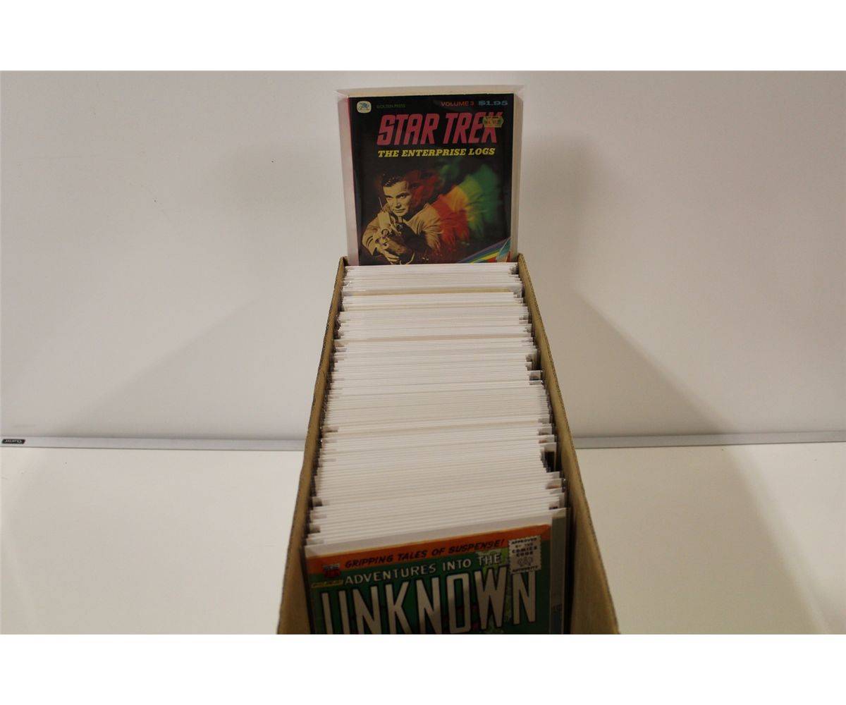 GOLD KEY & DELL VINTAGE ADVENTURE/ SCI-FI/ FANTASY/ HORROR LONG BOX (1950'S- 70'S) FULL OF GOLD, SILVER & BRONZE RUNS & TITLES. INCLUDES FOUR COLOR, STAR TREK, MULTIPLE #1'S, ETC. NO DUPLICATES, MIXED GRADES WITH MANY SHARP COPIES, TONS OF GUIDE VALUE HERE, CHOICE BOX!