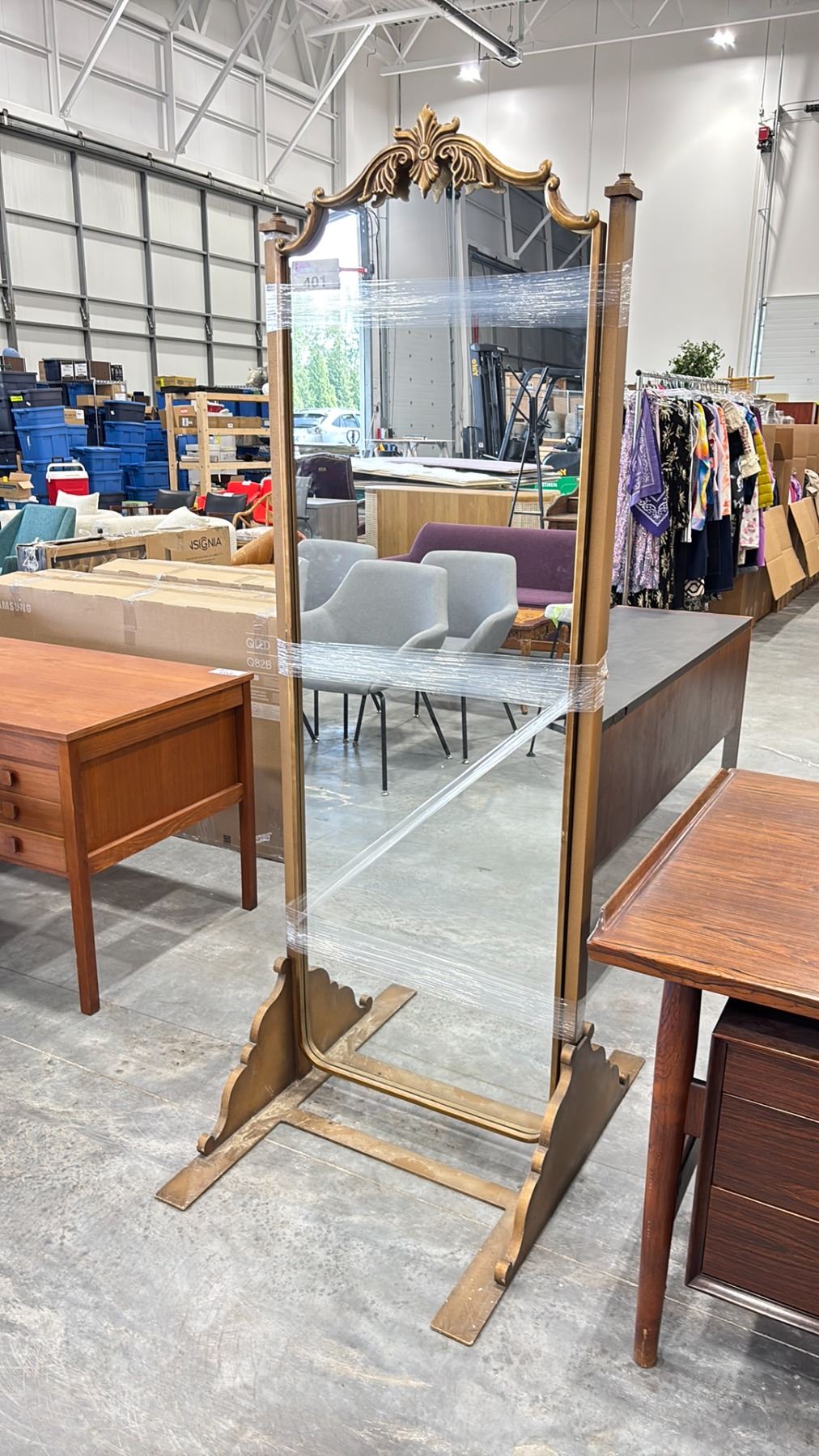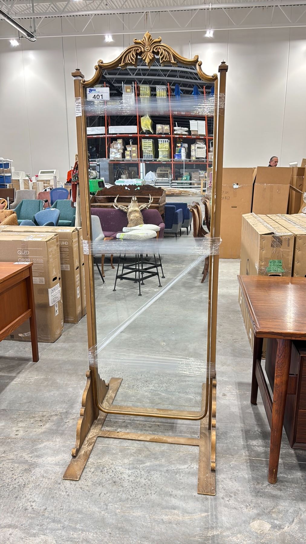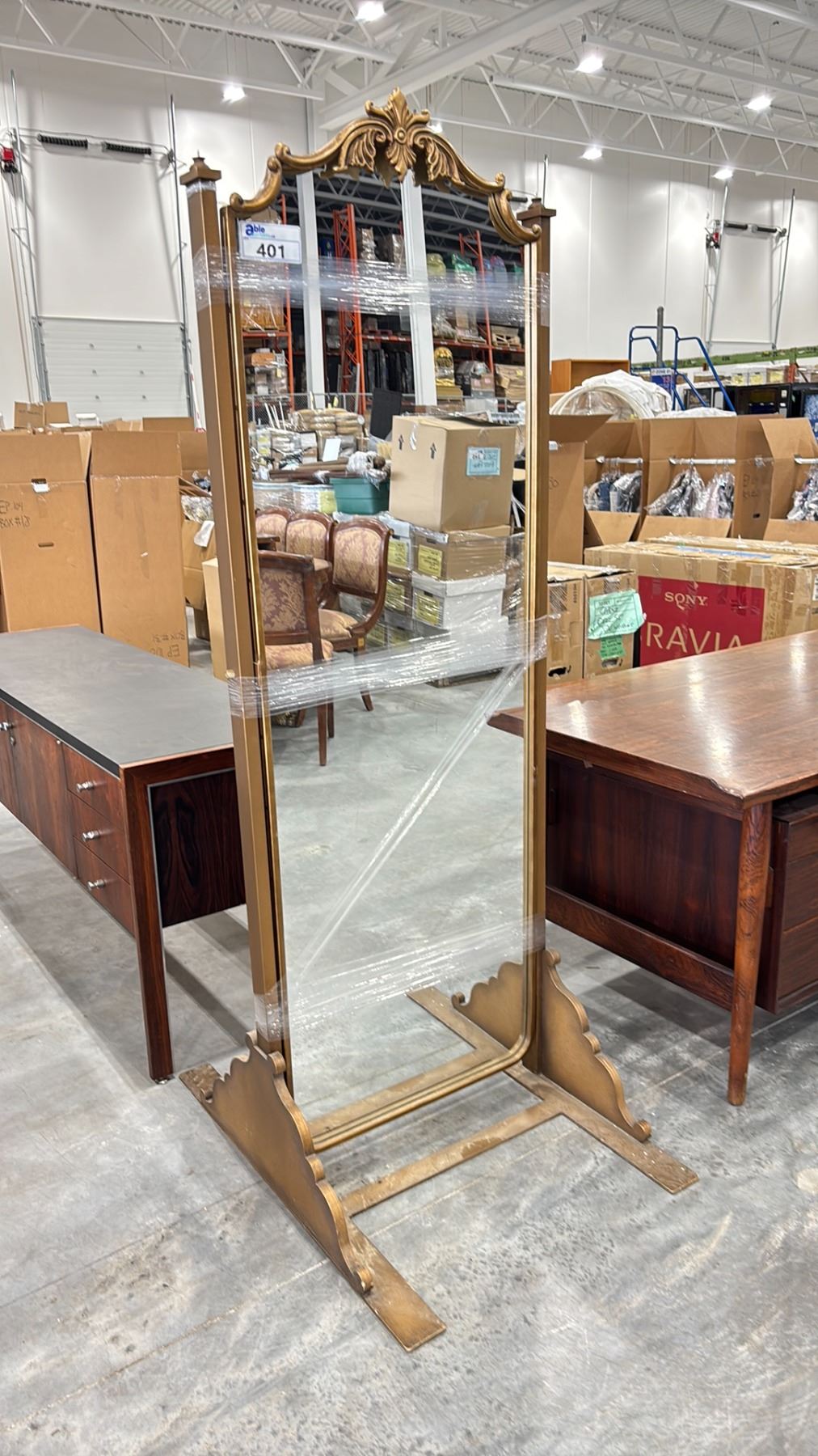 GOLD METAL FRAMED STAND UP MIRROR * MISSING TWO FINIALS*