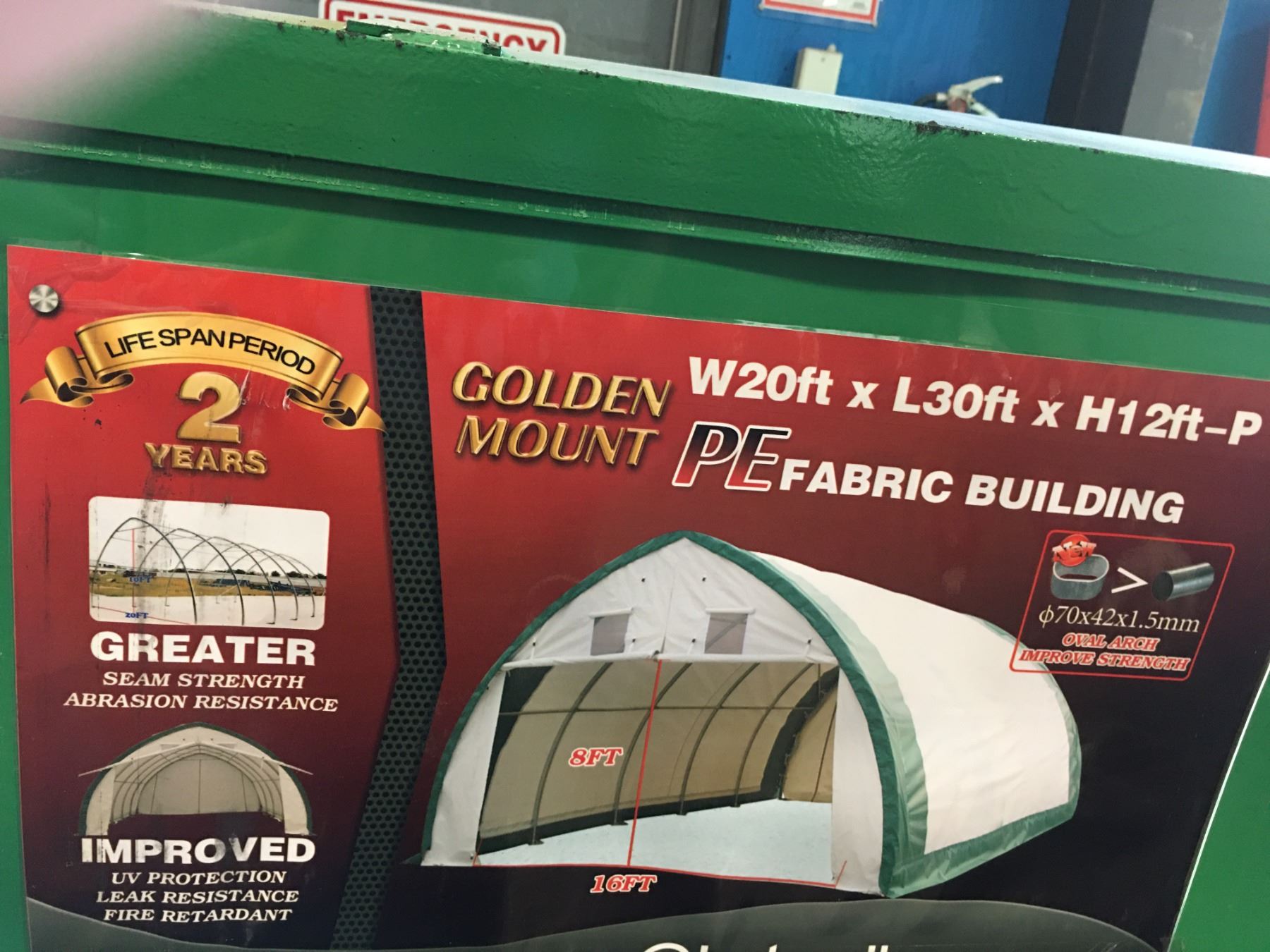 GOLD MOUNT S203012P-300GSM PE PEAK STORAGE SHELTER, SNOW RATED 200KG (20' X 30' X12')