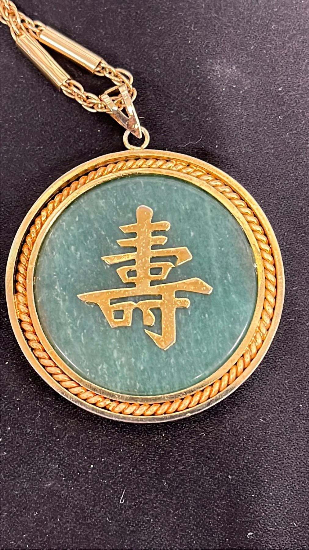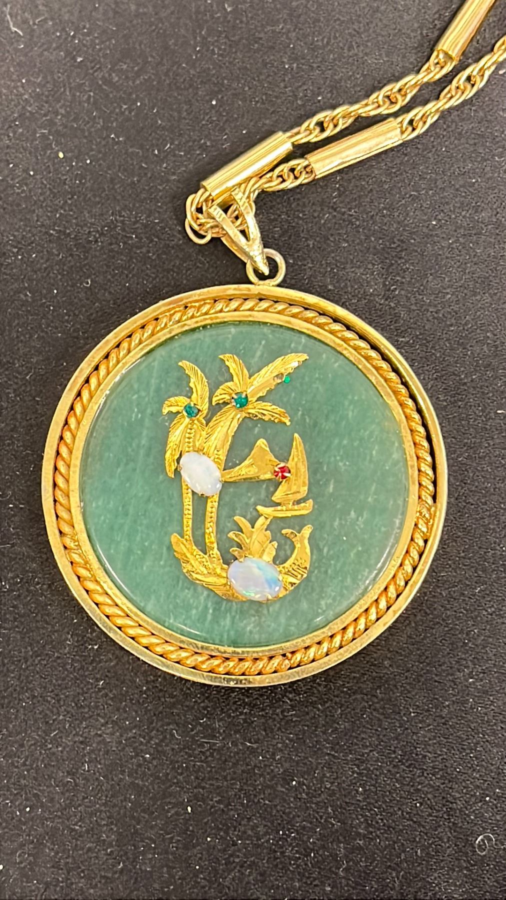 GOLD OPAL RUBY JADE PALM TREE LARGE ROUND PENDANT NECKLACE LONG