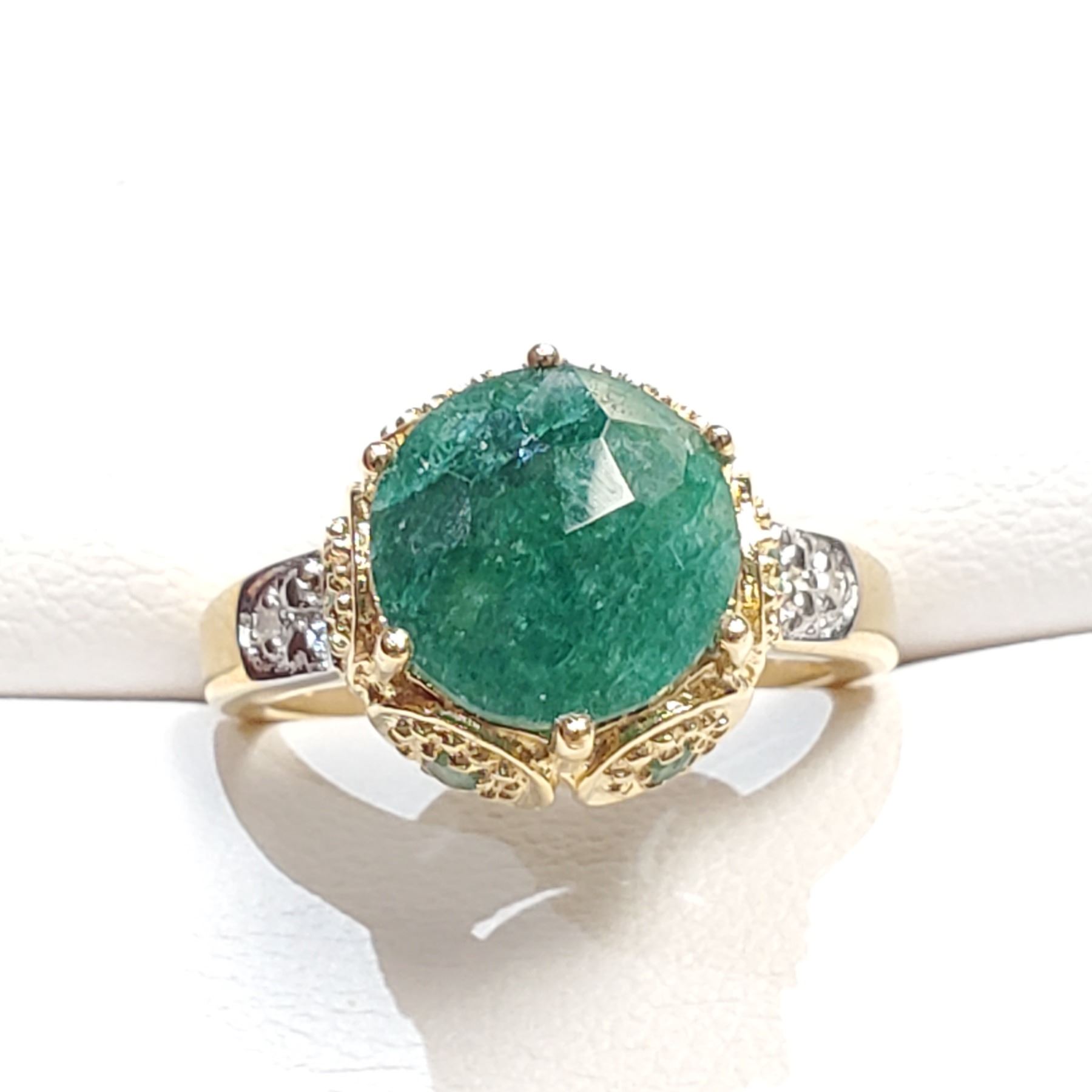 GOLD PLATED SIL EMERALD CZ(3.6CT) RING SIZE 7