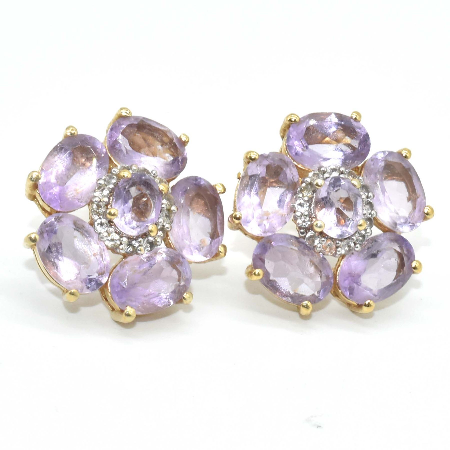 GOLD PLATED SILVER AMETHYST WHITE TOPAZ(4.5CT) GOLD RHODIUM PLATED EARRINGS (~WEIGHT 5.45G)