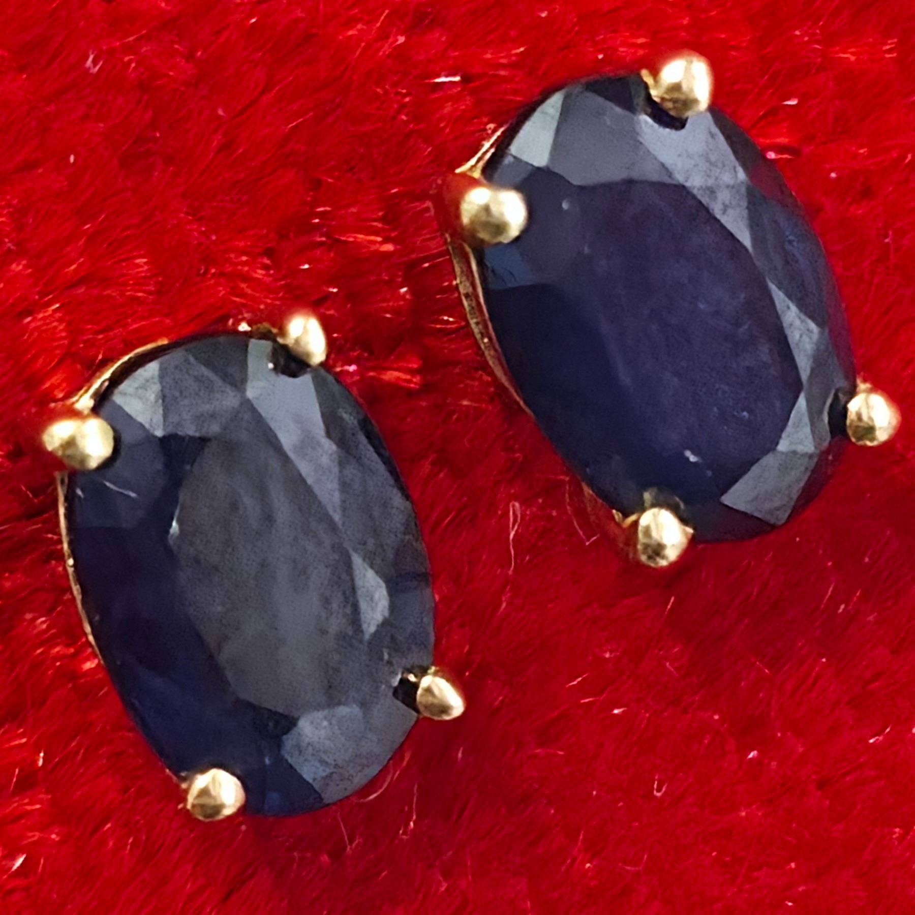 GOLD PLATED SILVER BLUE SAPPHIRE (0.45CT) GOLD RHODIUM PLATED EARRINGS (~WEIGHT 1.2G)