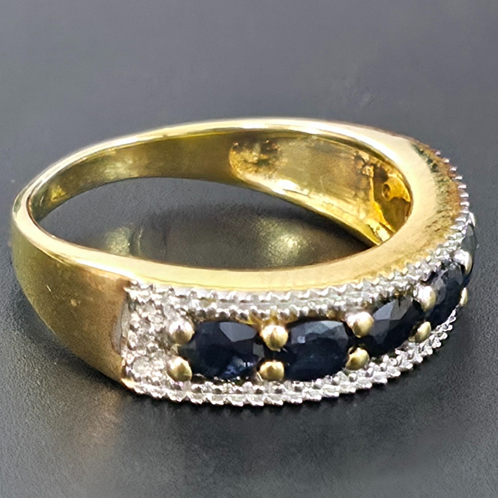 GOLD PLATED SILVER BLUE SAPPHIRE(0.9CT) GOLD RHODIUM PLATED RING (~WEIGHT 3.75G)