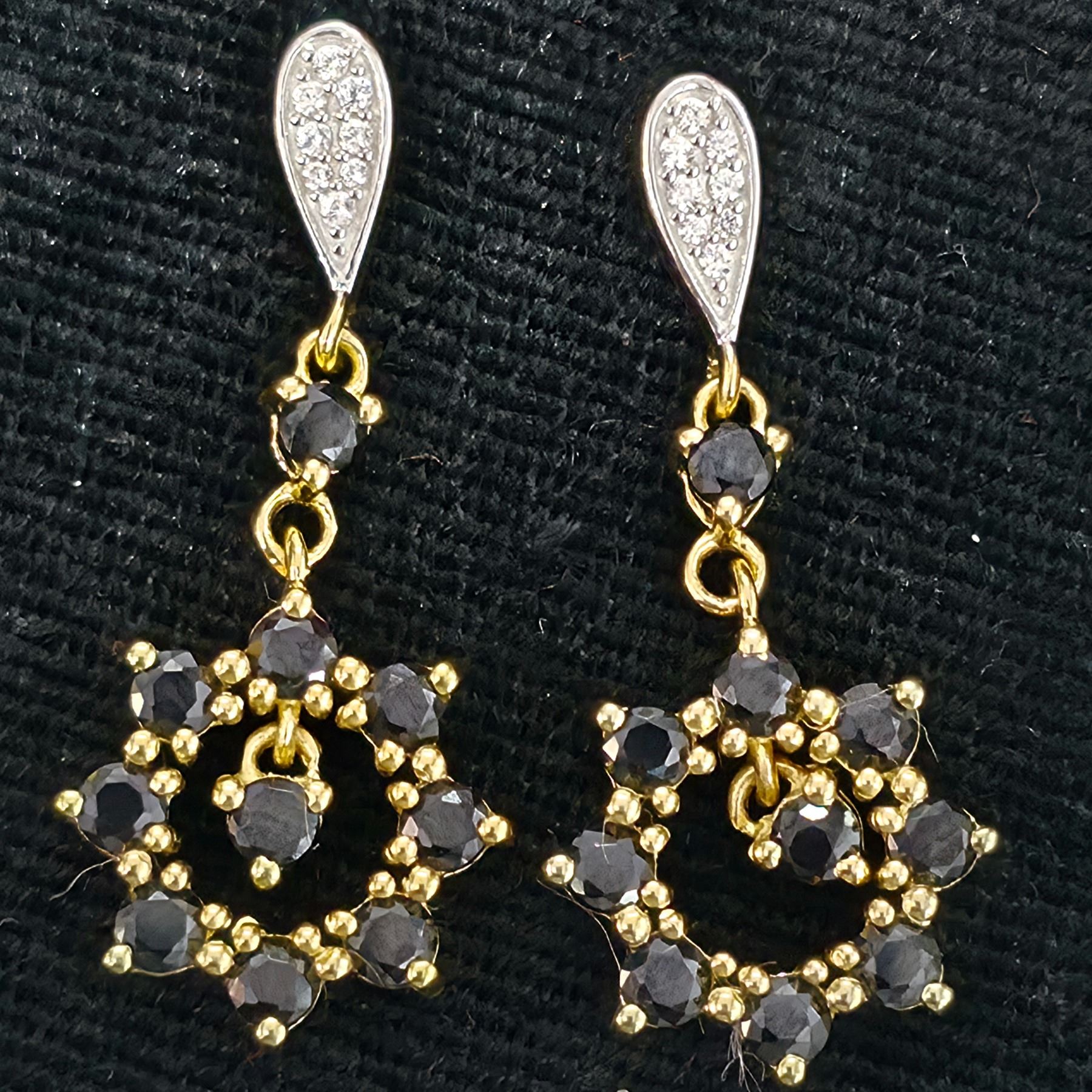 GOLD PLATED SILVER BLUE SAPPHIRE(1.15CT) GOLD RHODIUM PLATED EARRINGS (~WEIGHT 5.75G)