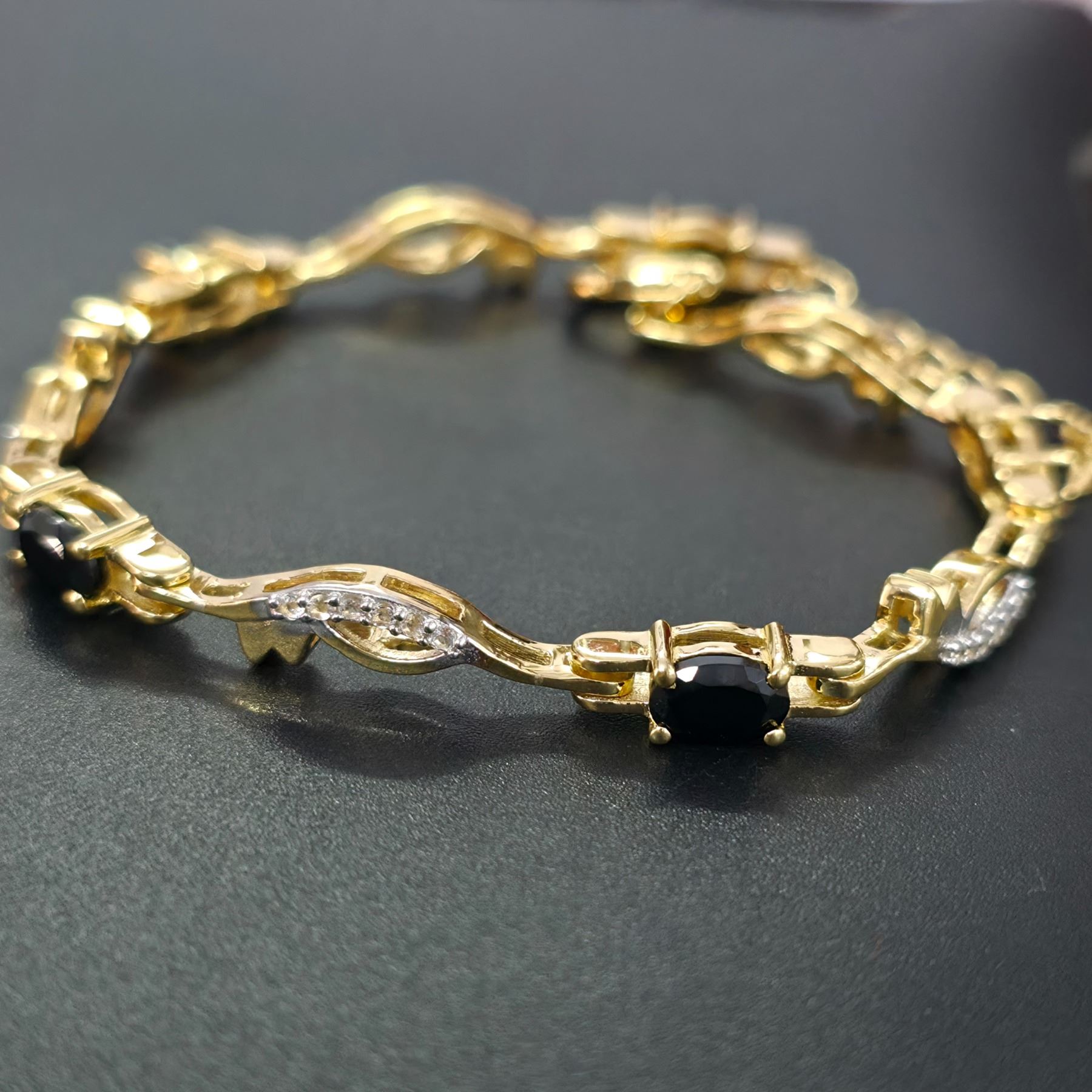 GOLD PLATED SILVER BLUE SAPPHIRE WHITE TOPAZ(2.7CT) GOLD RHODIUM PLATED BRACELET (~WEIGHT 7.85G)