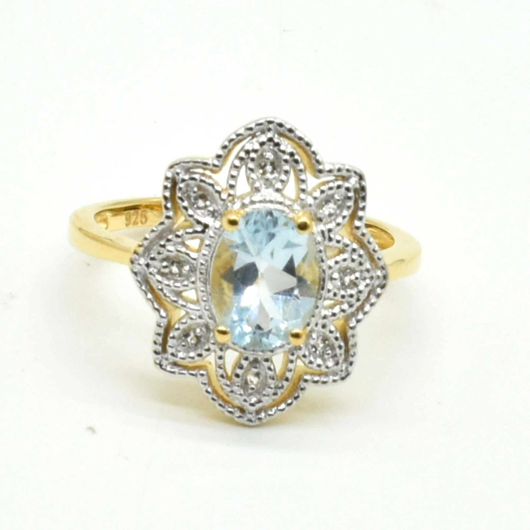 GOLD PLATED SILVER BLUE TOPAZ WHITE TOPAZ(1.2CT) RING SIZE 7