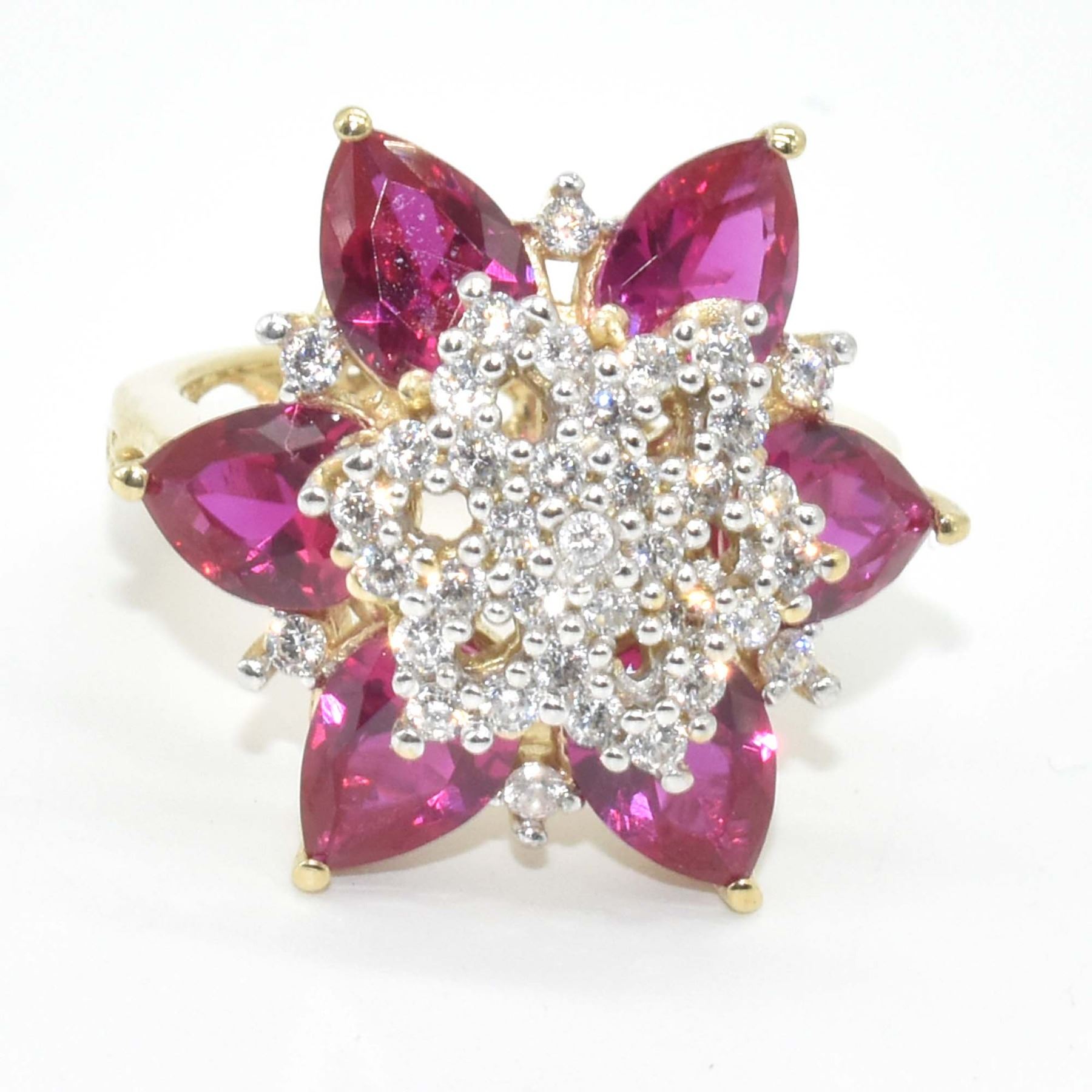 GOLD PLATED SILVER CUBIC ZIRCONIA(5.4CT) GOLD RHODIUM PLATED RING (~SIZE 5.5) (~WEIGHT 5.75G)