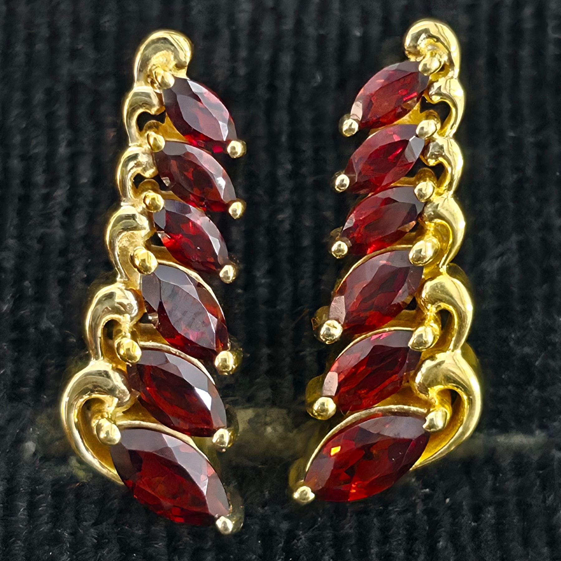 GOLD PLATED SILVER GARNET (2.7CT) GOLD RHODIUM PLATED EARRINGS (~WEIGHT 5.05G)