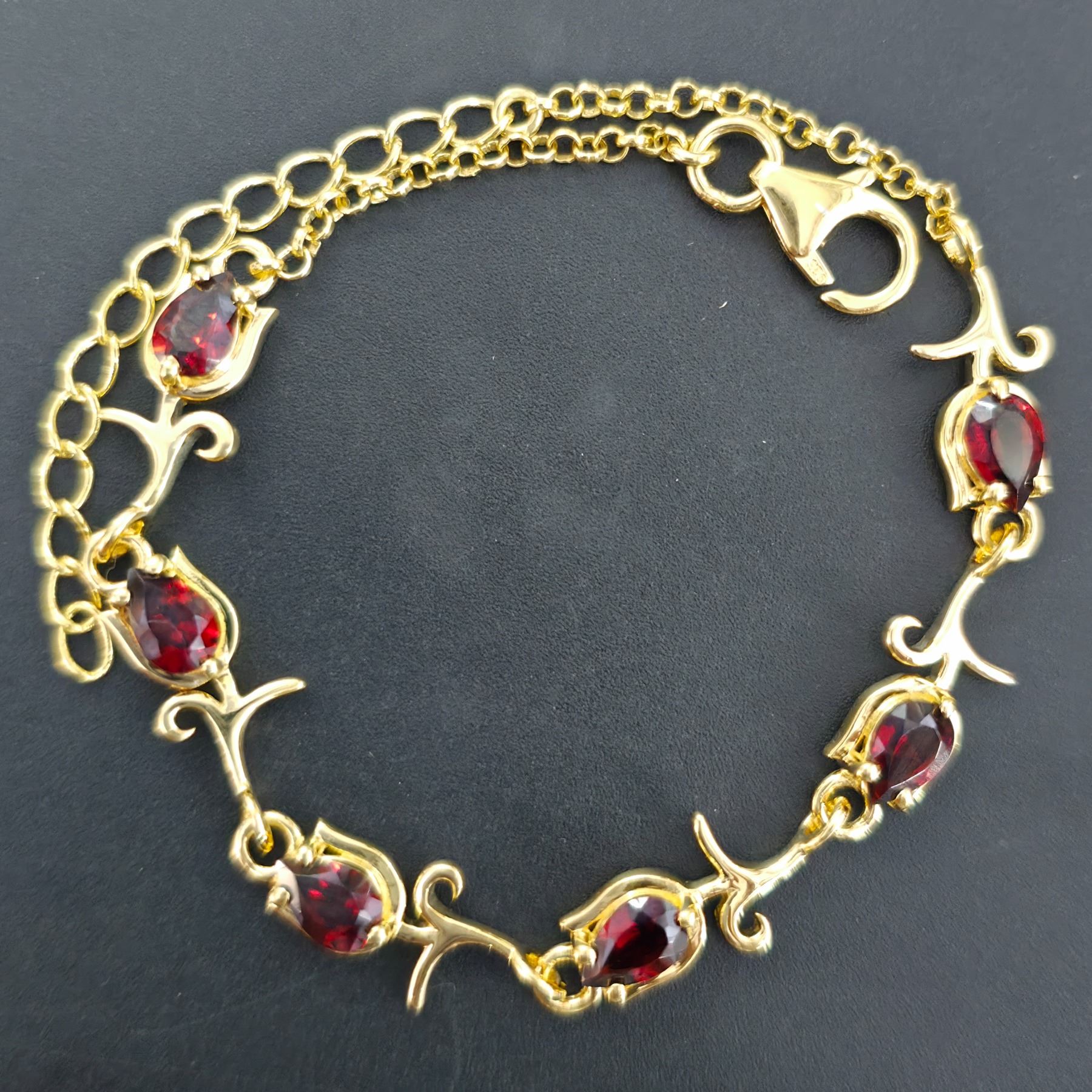 GOLD PLATED SILVER GARNET(3.6CT) GOLD RHODIUM PLATED BRACELET (~WEIGHT 5.5G)