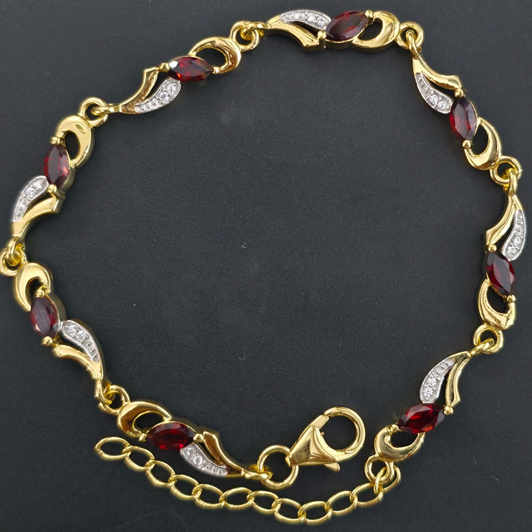 GOLD PLATED SILVER GARNET CZ(2.25CT) GOLD RHODIUM PLATED BRACELET (~WEIGHT 6.85G)