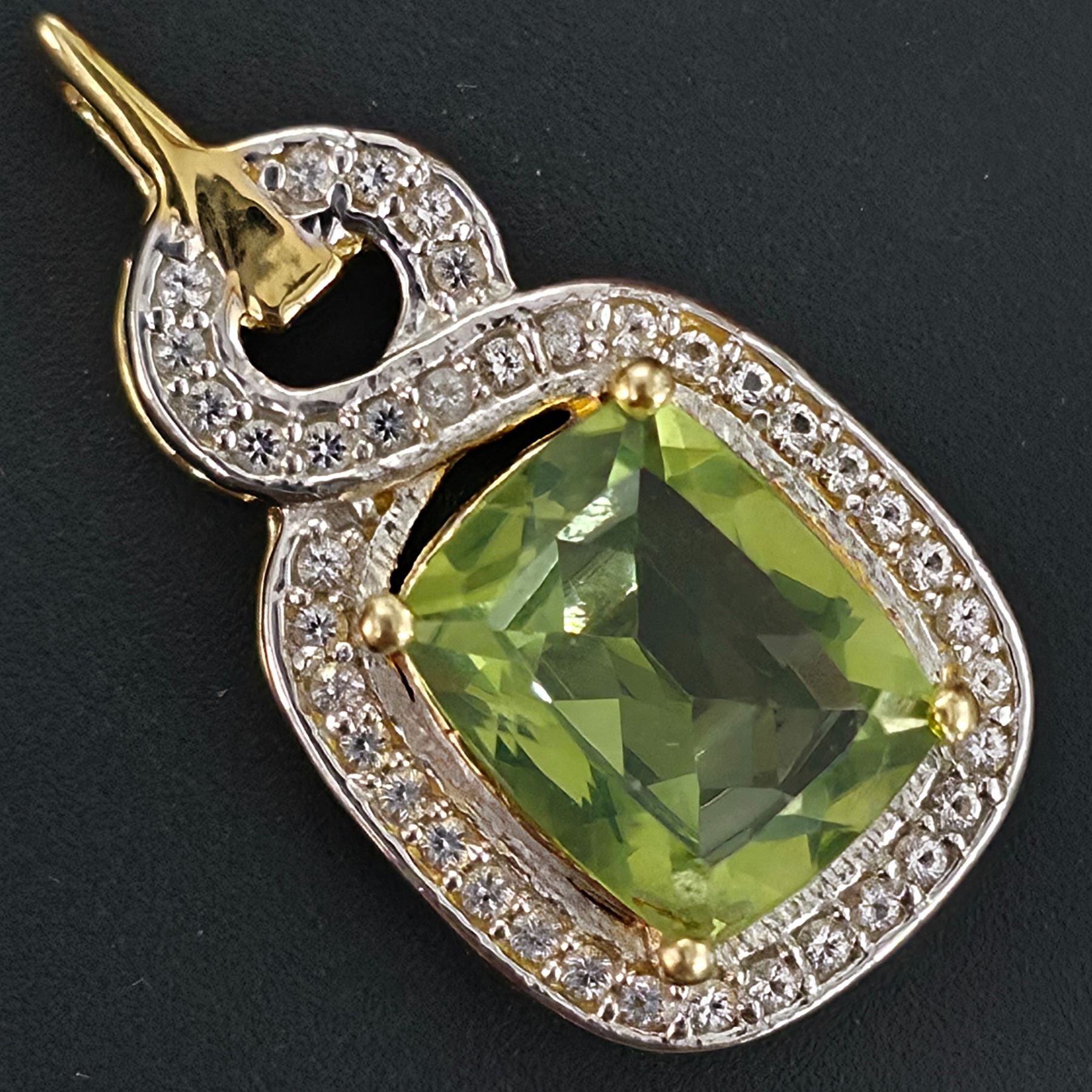 GOLD PLATED SILVER GREEN QUARTZ(3.6CT) GOLD RHODIUM PLATED PENDANT (~WEIGHT 3.25G)